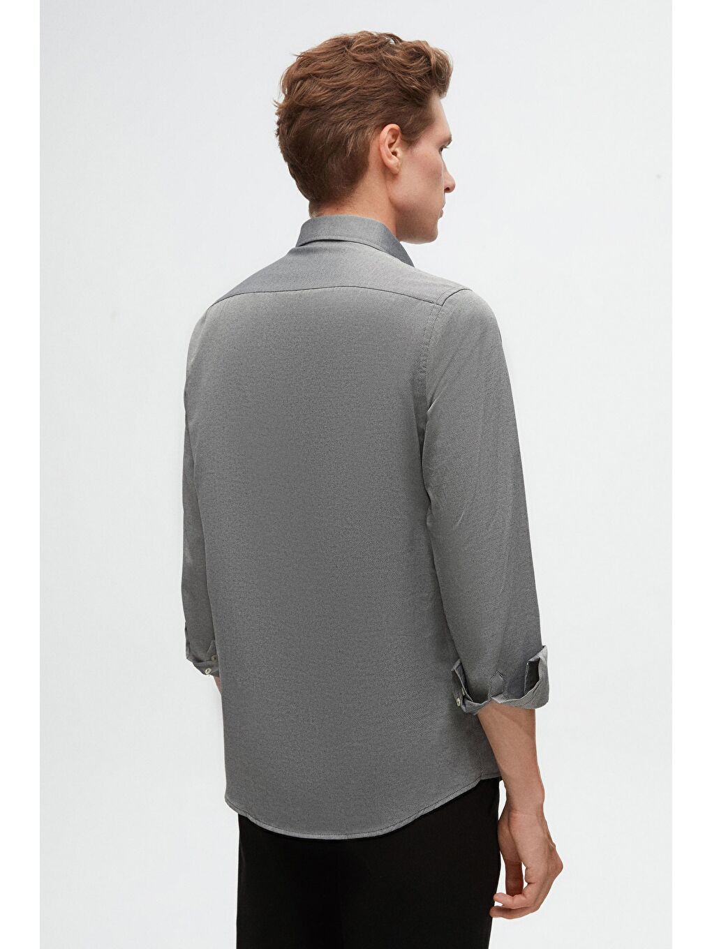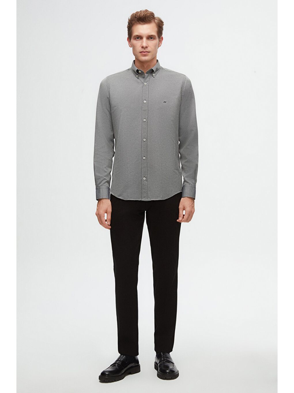 پیراهن نخی طرحدار اسلیم فیت، یقه دکمهدار آکسفورد آنتراسیت، اتوکشی آسان، گلدوزی شده