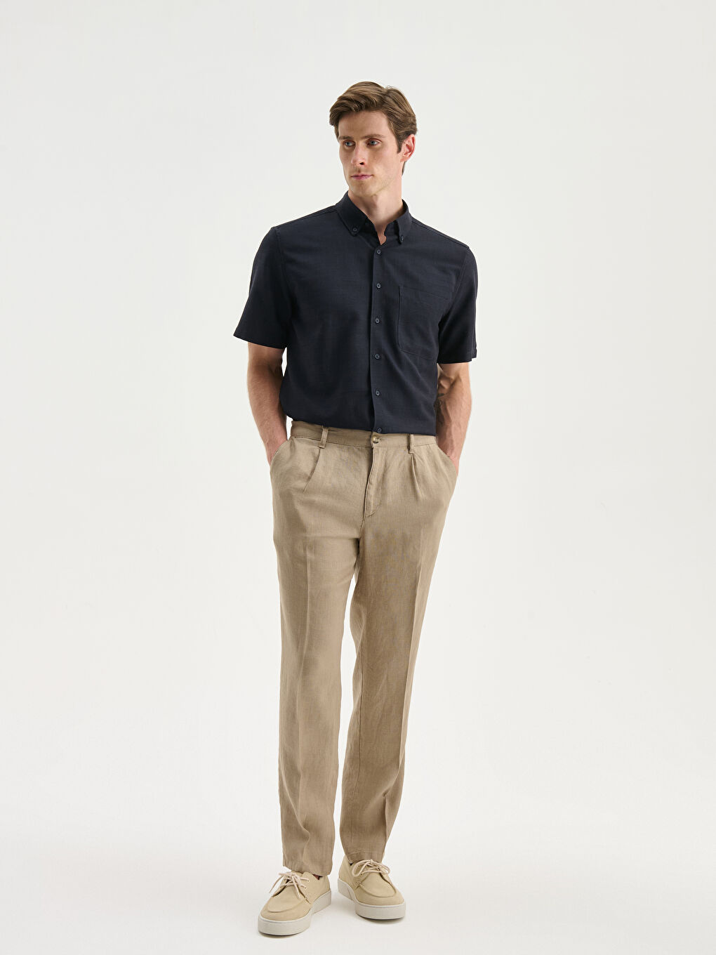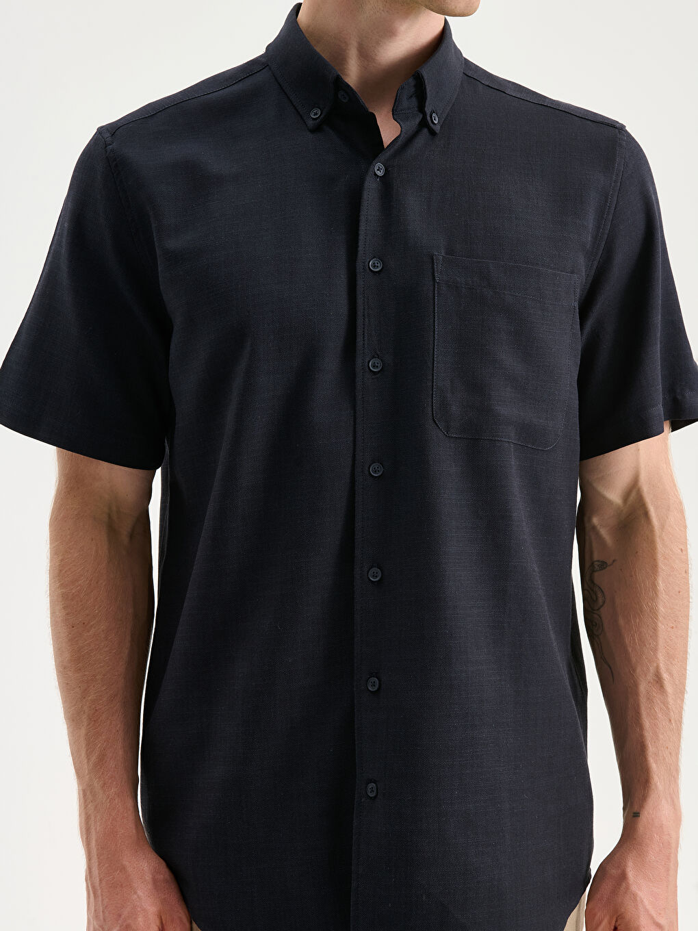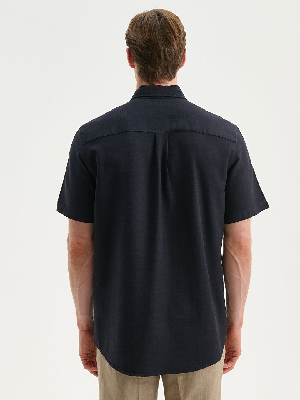 پیراهن مردانه آستین کوتاه کتانی طرح معمولی سرمه‌ای سرمه‌ای