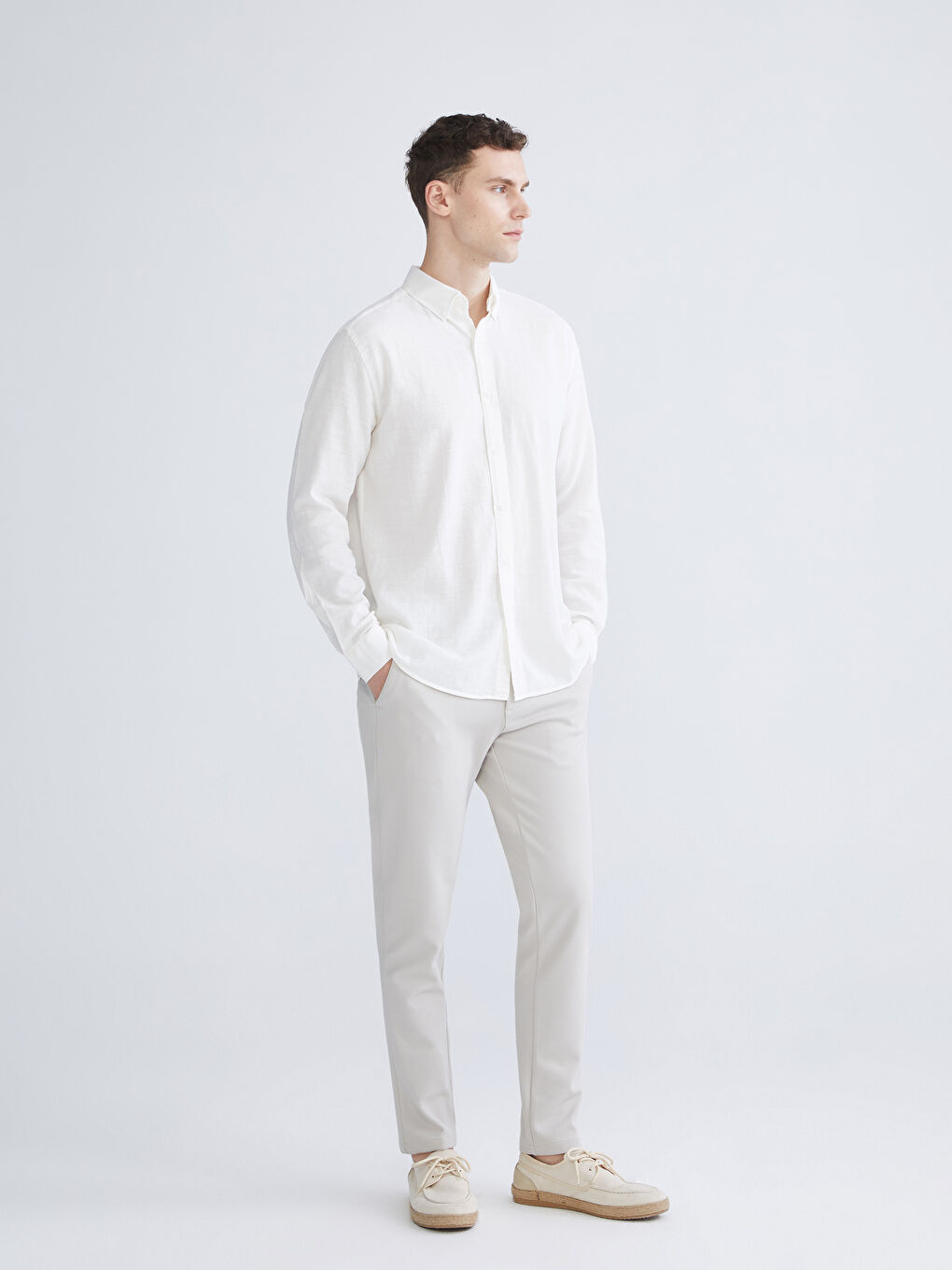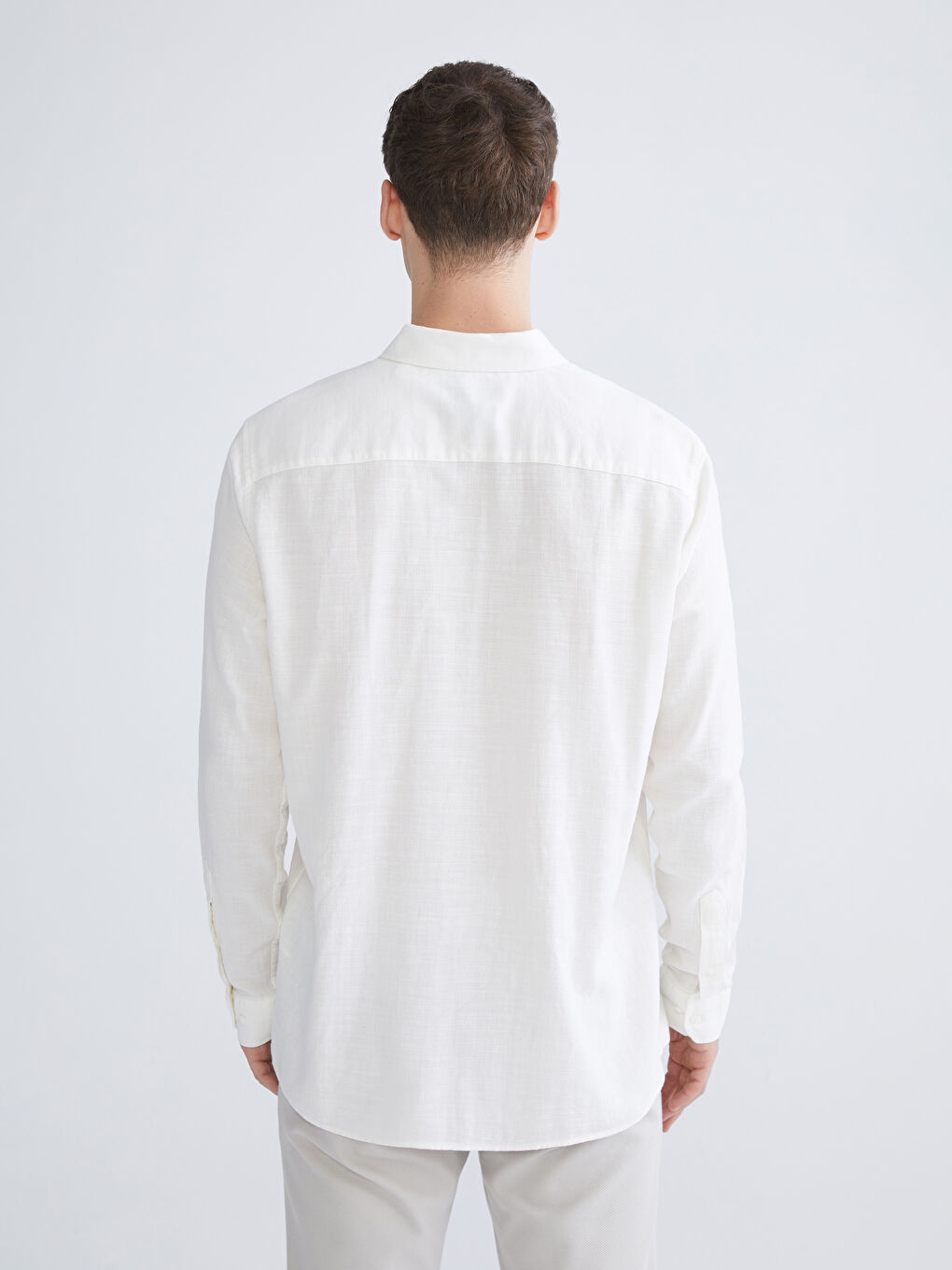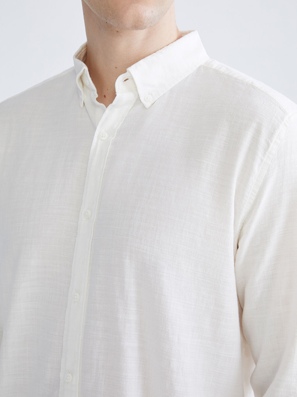 پیراهن مردانه دابی آستین بلند سفید اسلیم فیت