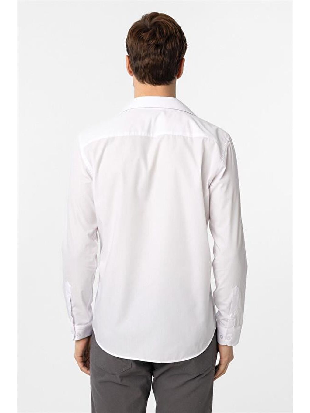 پیراهن یقه کلاسیک سفید اسلیم ساده
