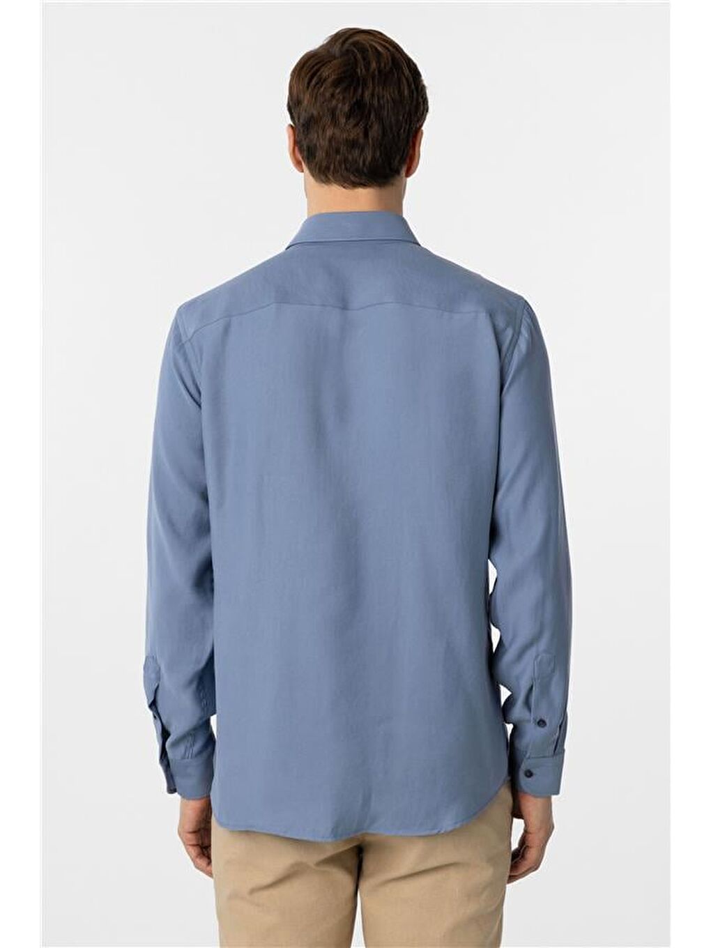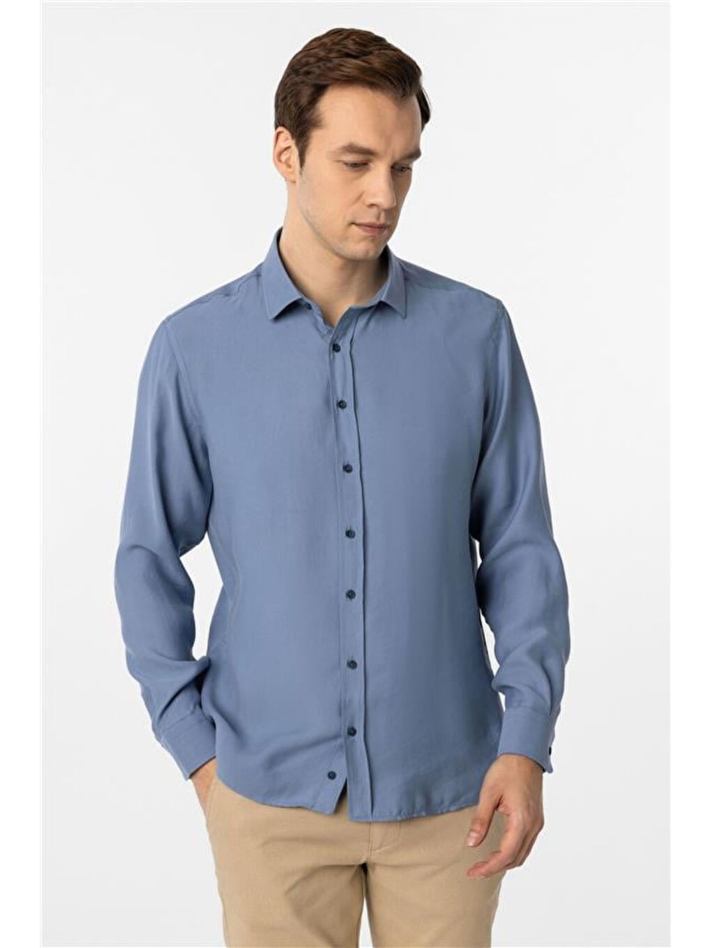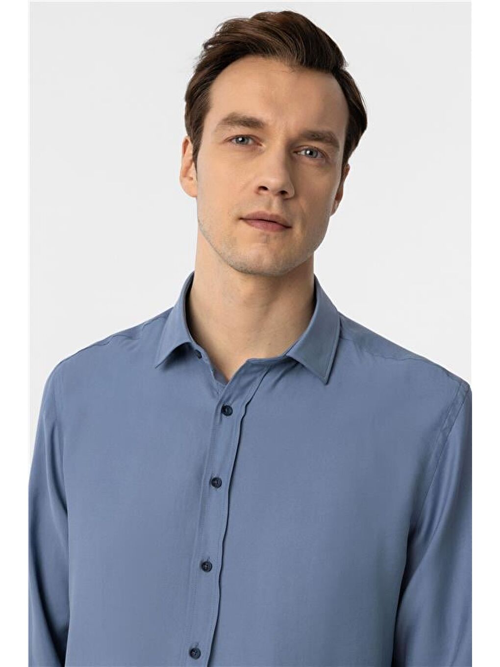 پیراهن یقه کلاسیک ساده آبی اسلیم