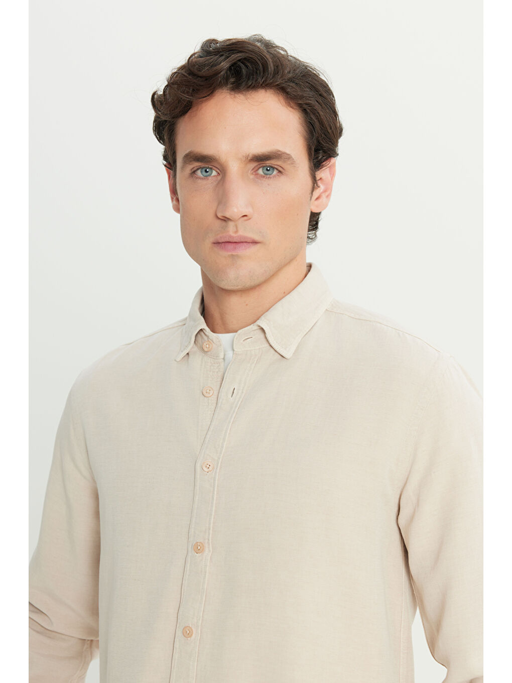 پیراهن مردانه کتان معمولی برش معمولی، طرح ترکیبی پنبه و بژ