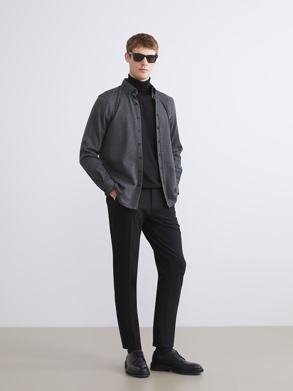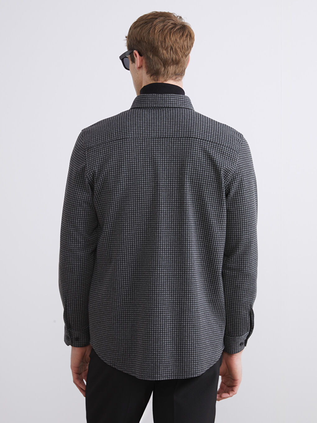 پیراهن مردانه طرح چوب چهارخانه آستین بلند آنتراسیت معمولی