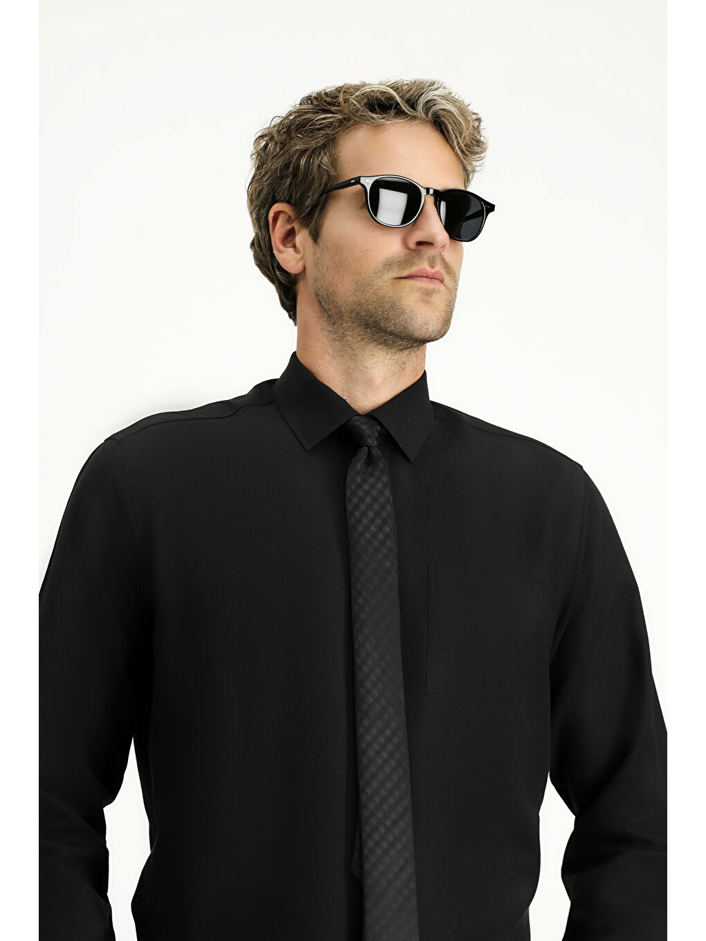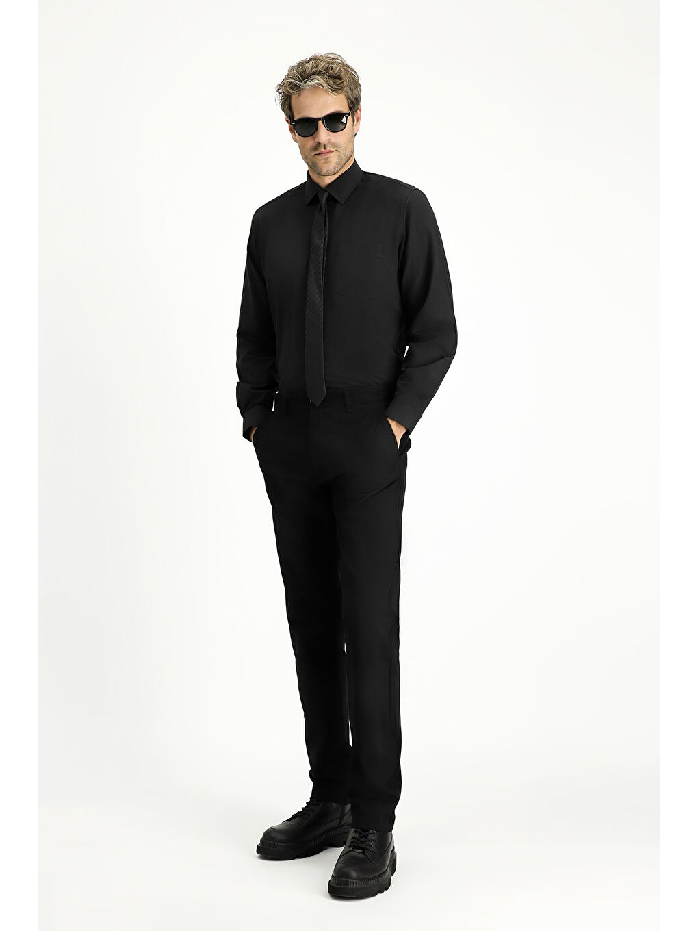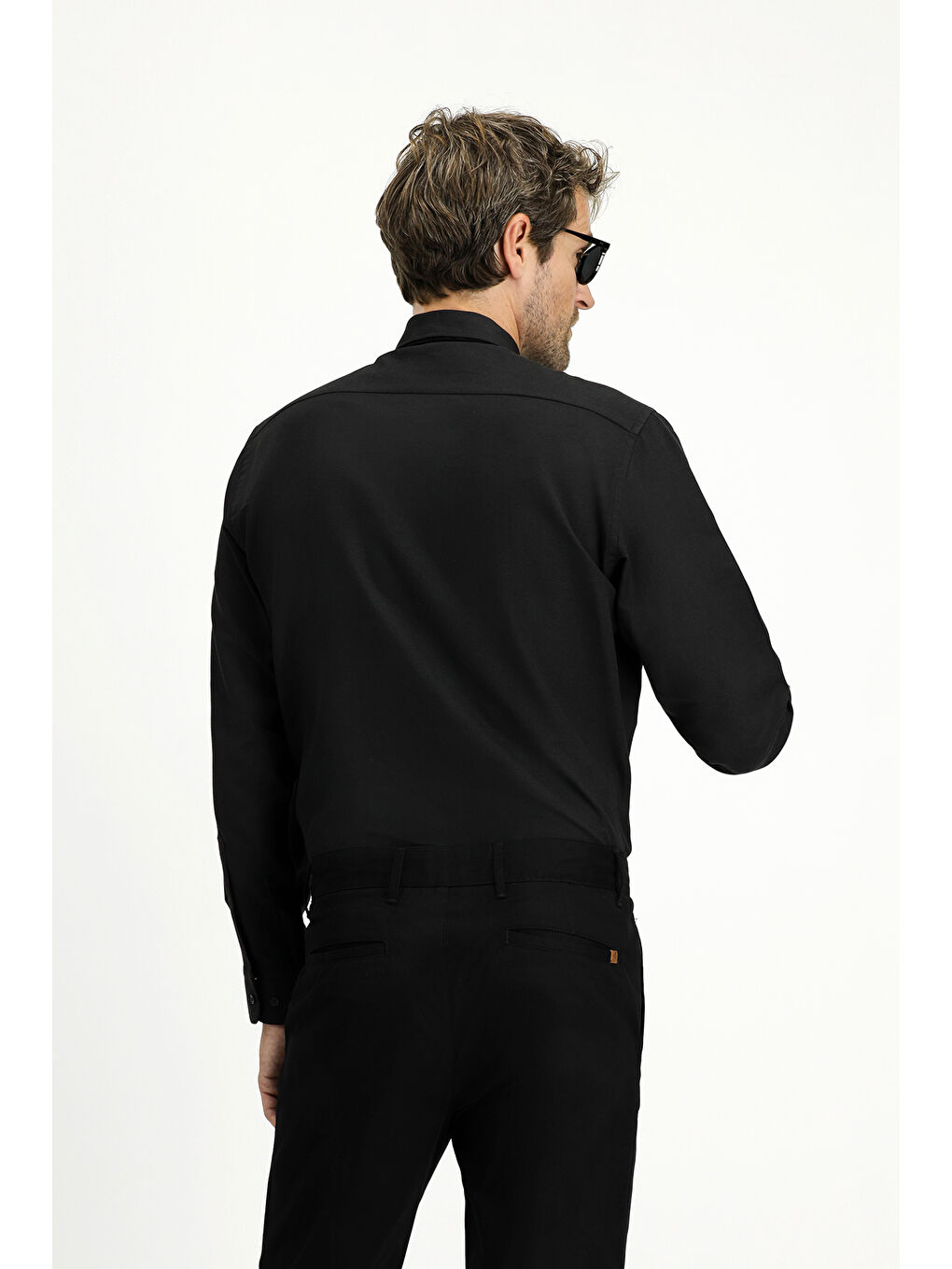 پیراهن آستین بلند مشکی یقه کلاسیک آکسفورد نخی طرح Easy Iron