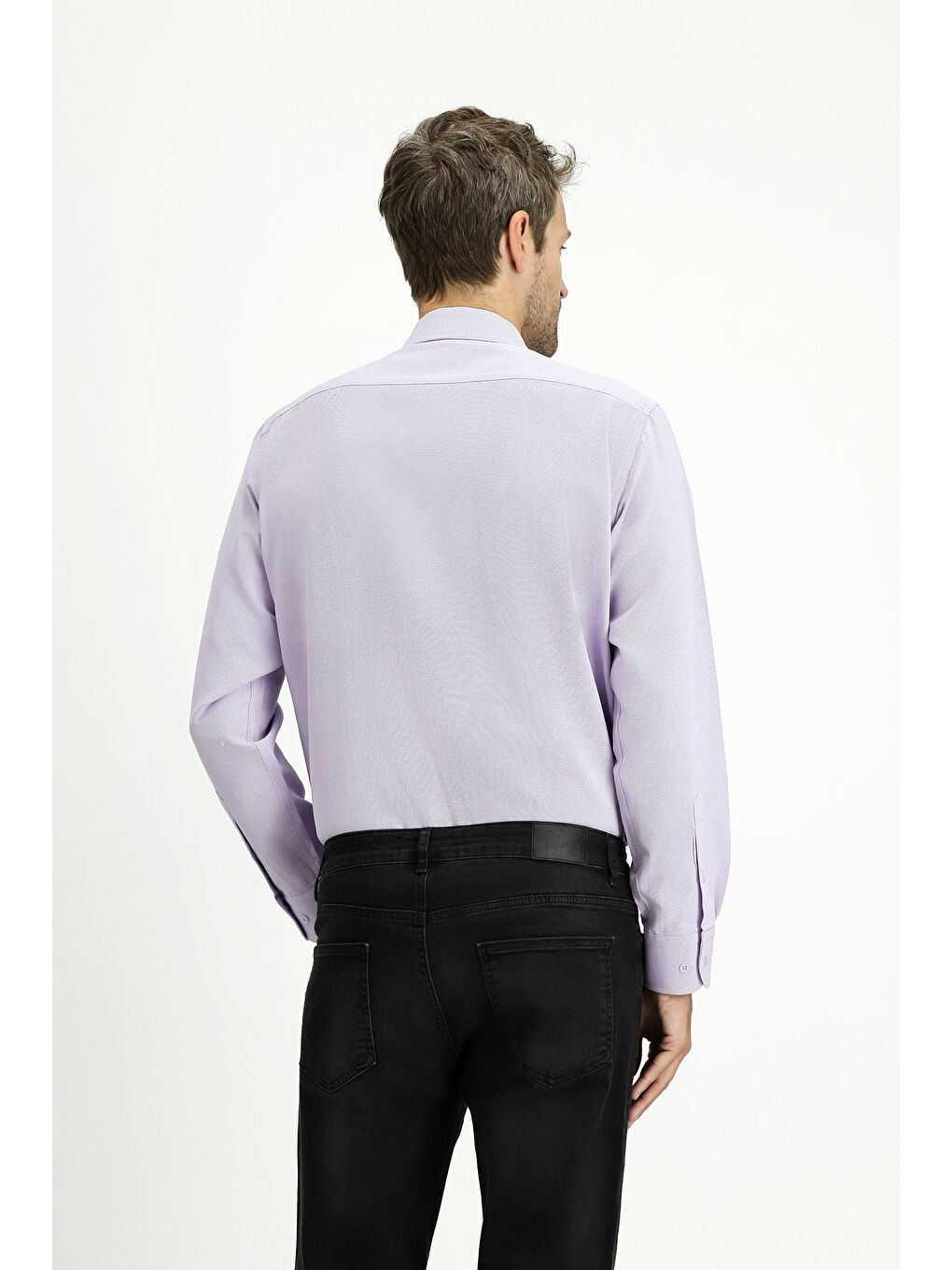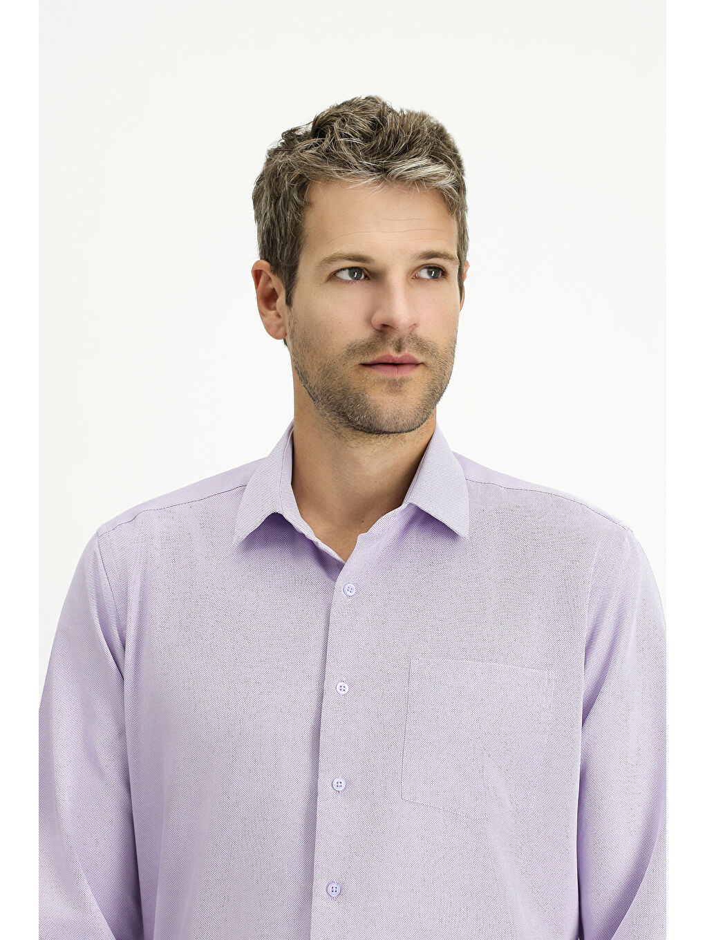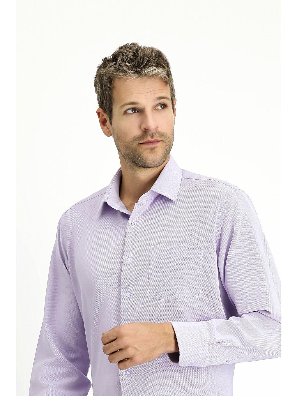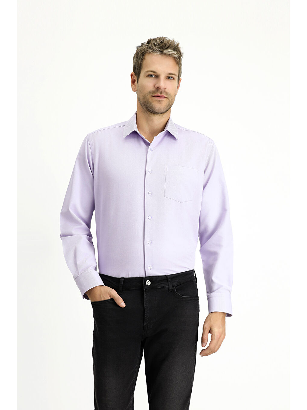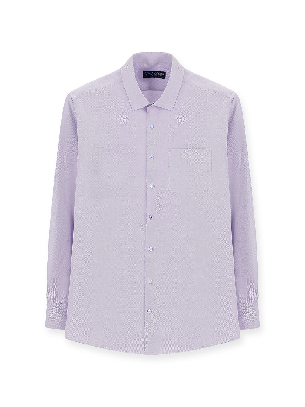پیراهن آستین بلند یاسی رنگ یقه کلاسیک آکسفورد نخی طرح Easy Iron