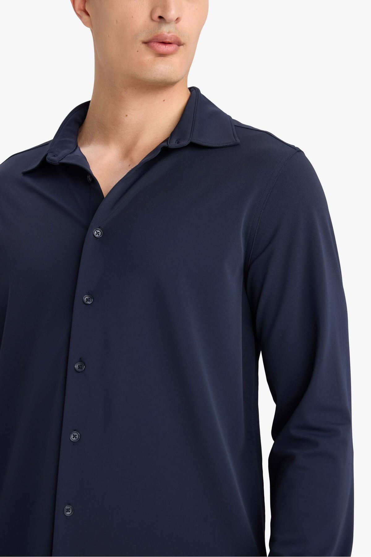 دفاکتو پیراهن مردانه پولو یقه گرد باریک اسلیم فیت آبی نفتی مدل Piqué F0337AX/NV91