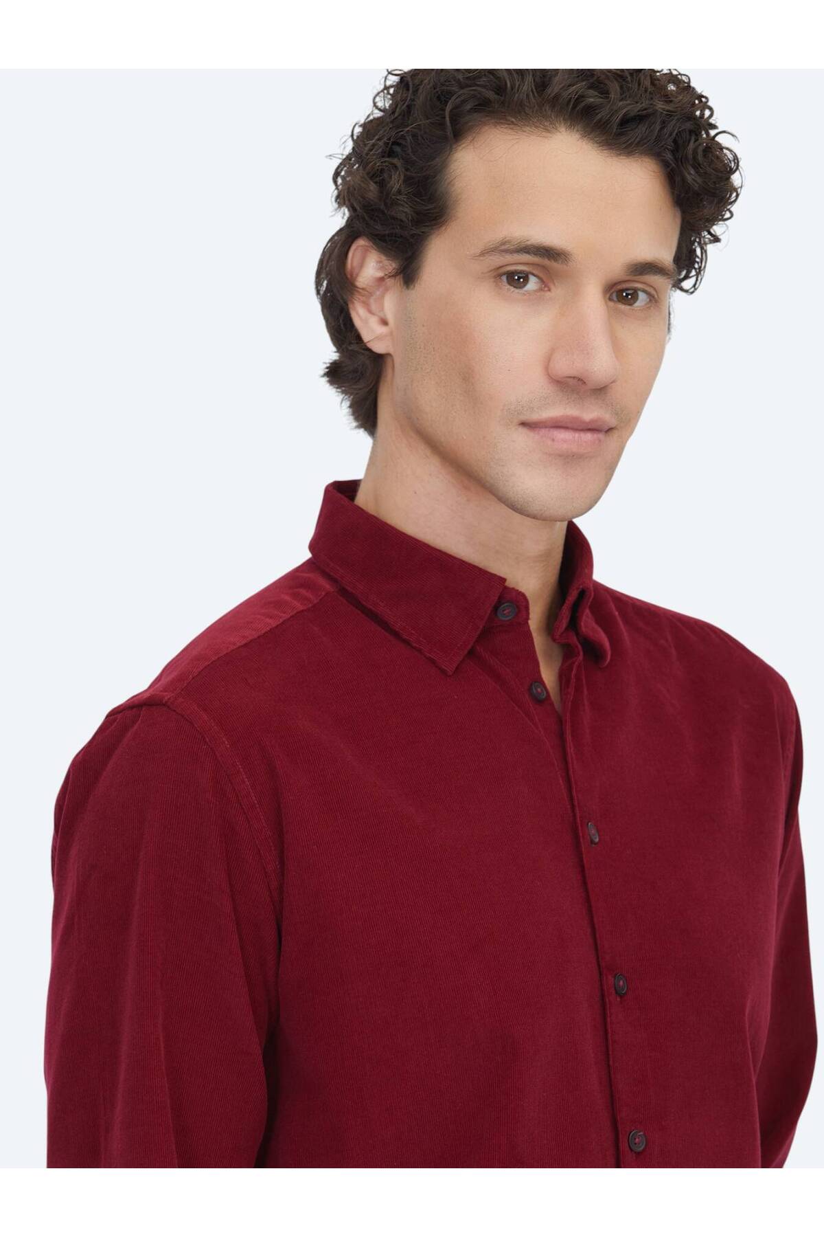 کیپ پیراهن مردانه طرح راه راه قرمز، طرح مخمل کژوال، جنس ۱۰۰٪ پنبه