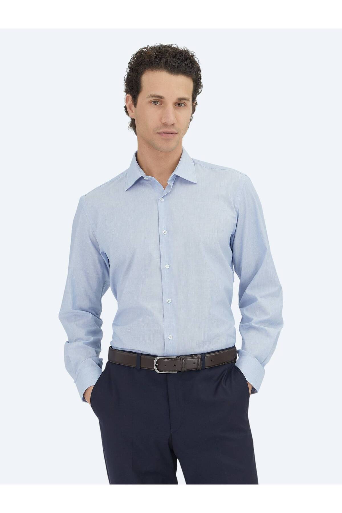 کیپ پیراهن نخی کلاسیک سرمه‌ای طرح معمولی بافته شده