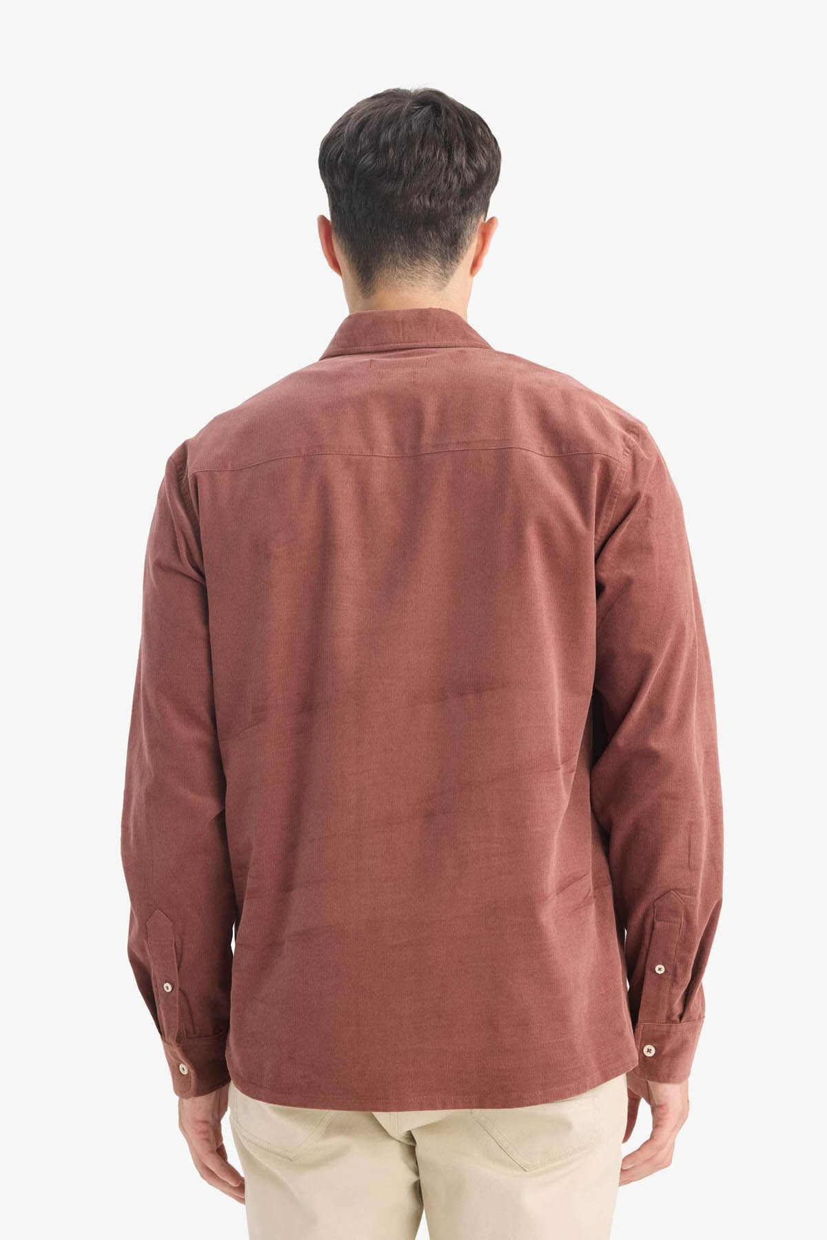 دفاکتو پیراهن مردانه یقه گرد معمولی آستین بلند قهوهای کد E9024AX/BN152