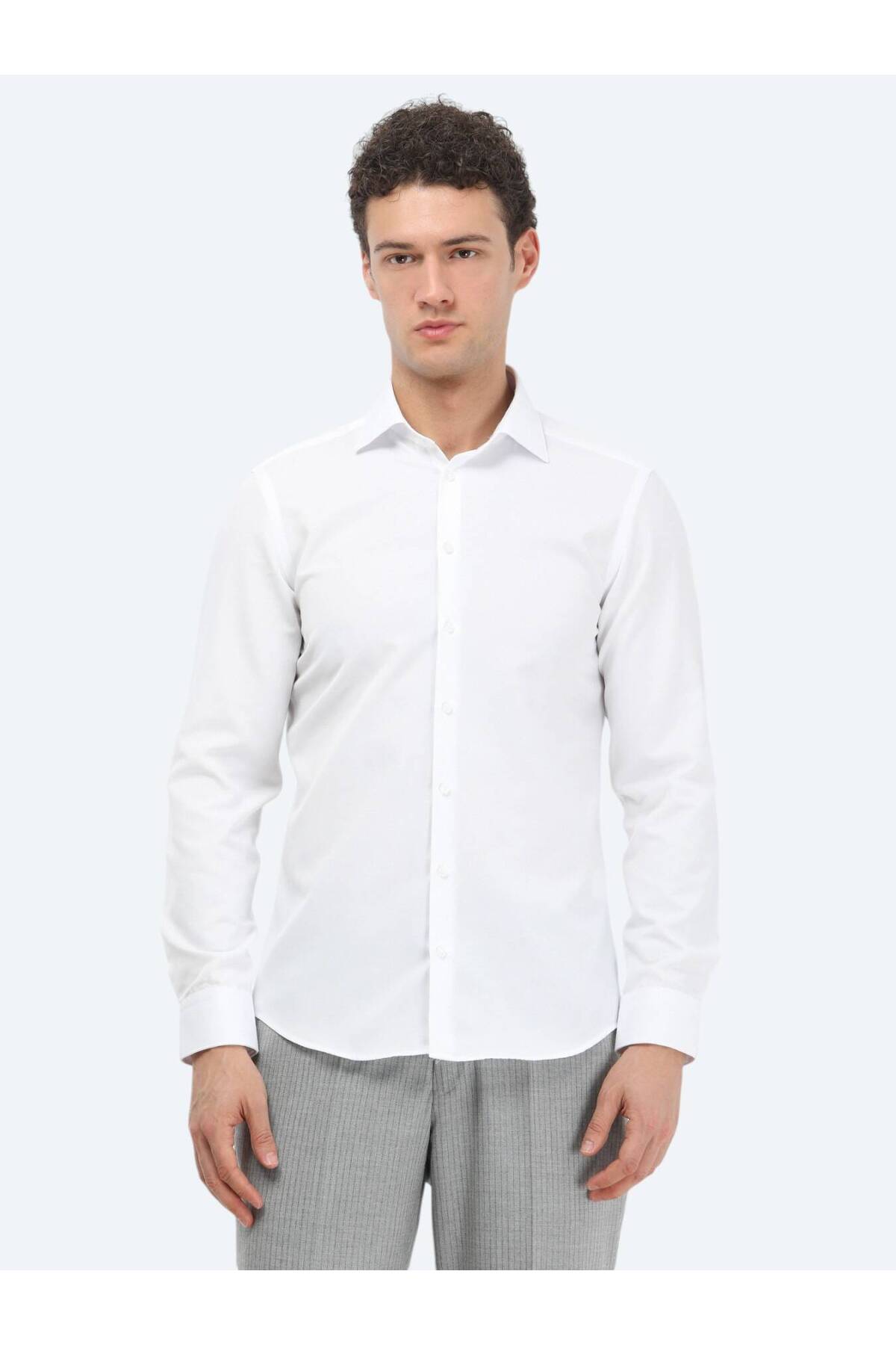 کیپ پیراهن نخی کلاسیک ساده و اسلیم فیت سفید بافته شده