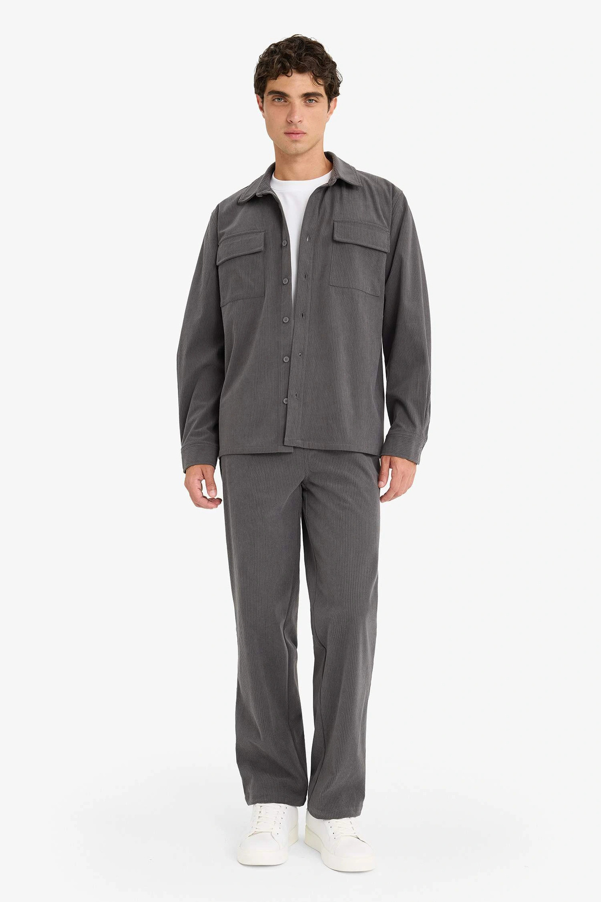 دفاکتو پیراهن آستین بلند کبریتی سایز معمولی آنتراسیت F1619AXAR104