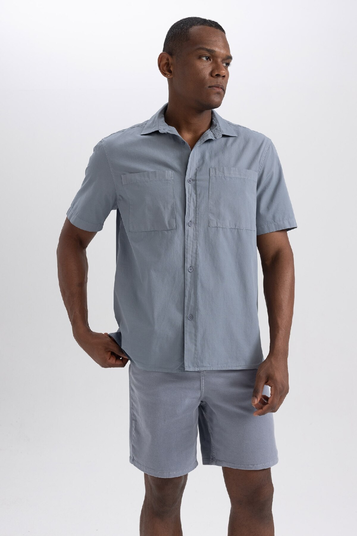 دفاکتو پیراهن آستین کوتاه جیبدار نخی مدل Relax Fit B0833ax23hs