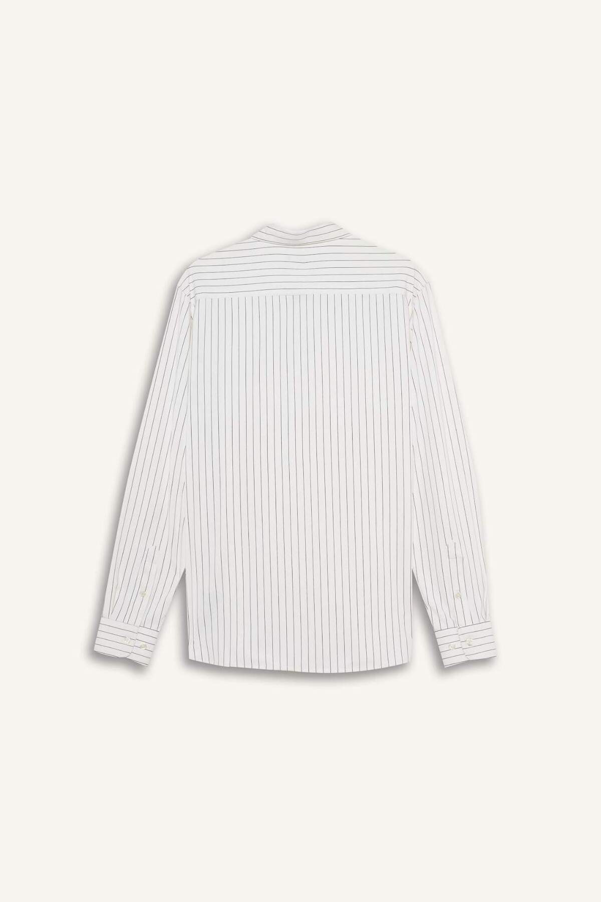دفاکتو تیشرت آستین بلند یقه گرد راه راه باریک اسلیم فیت B6487AX24SP