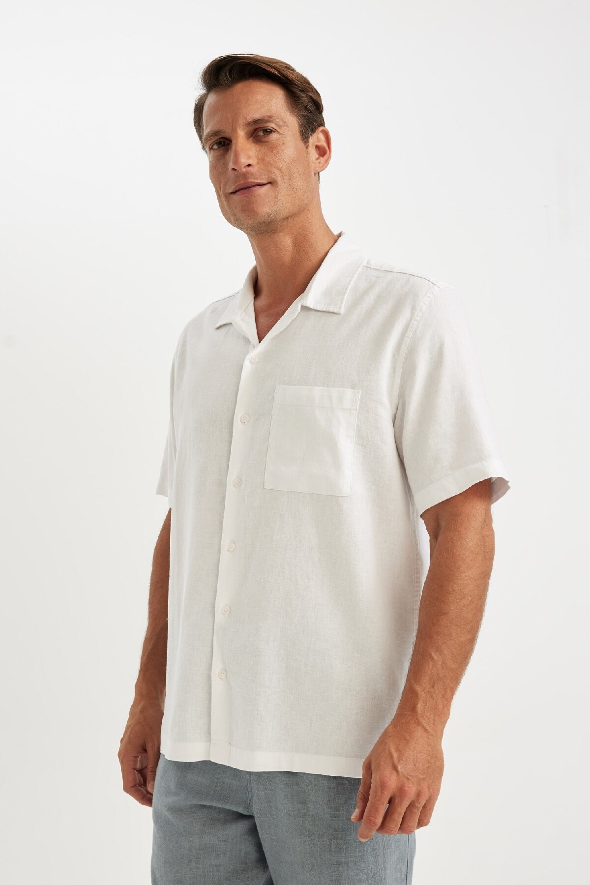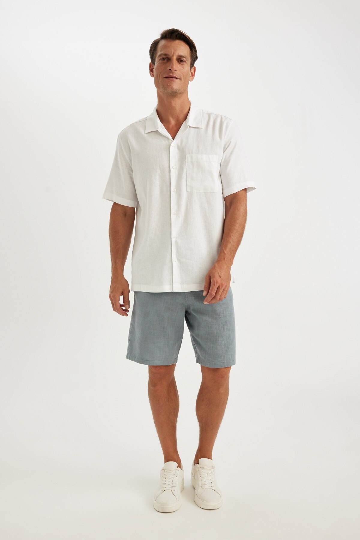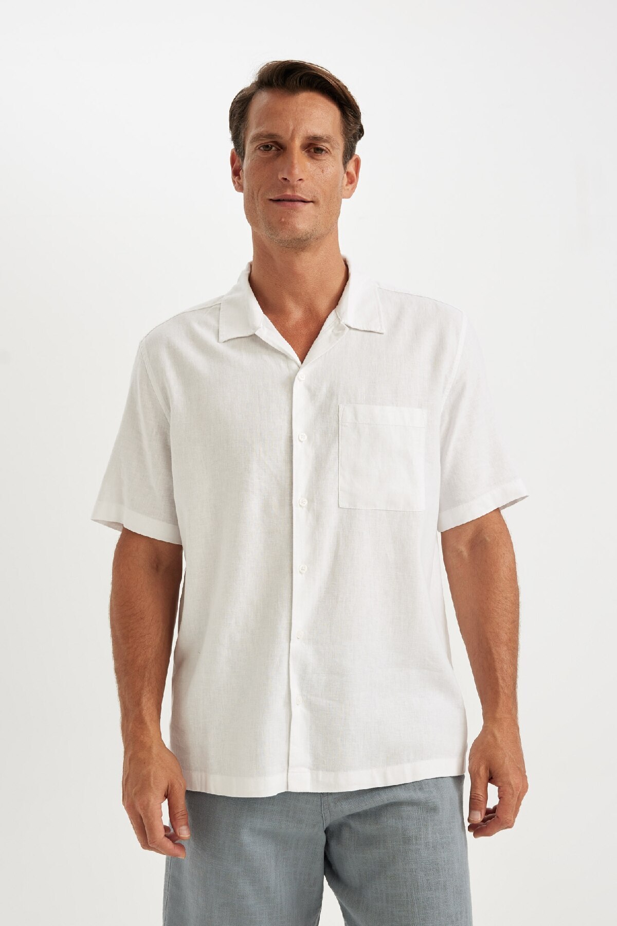 دفاکتو پیراهن آستین کوتاه سفید یقه پولو تابستانی طرح Relax Fit، ترکیبی از کتان و کتان C1110ax24sm
