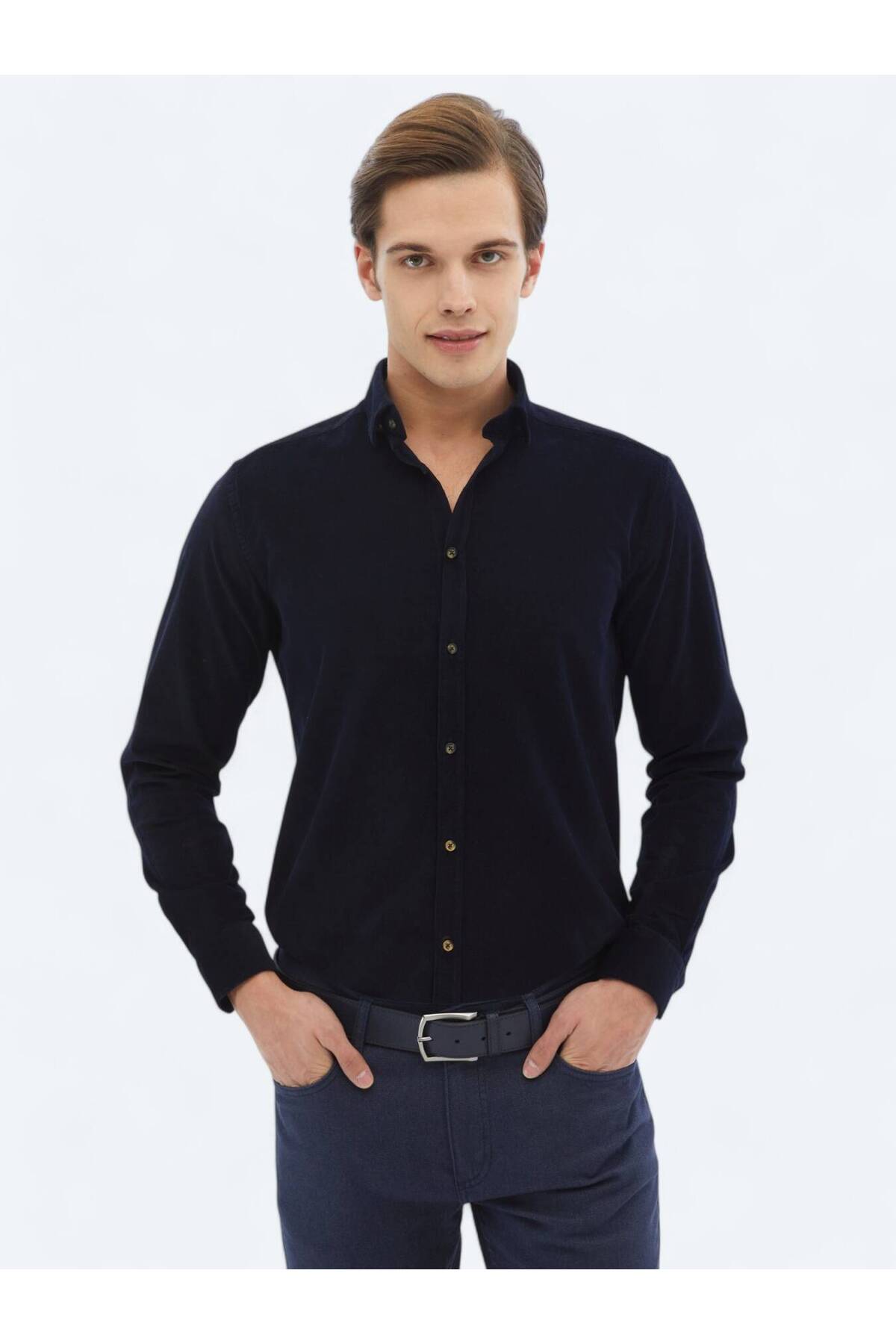 کیپ پیراهن مردانه طرح مخمل کبریتی سرمه‌ای مدل Corduroy سایز معمولی، 100% نخی