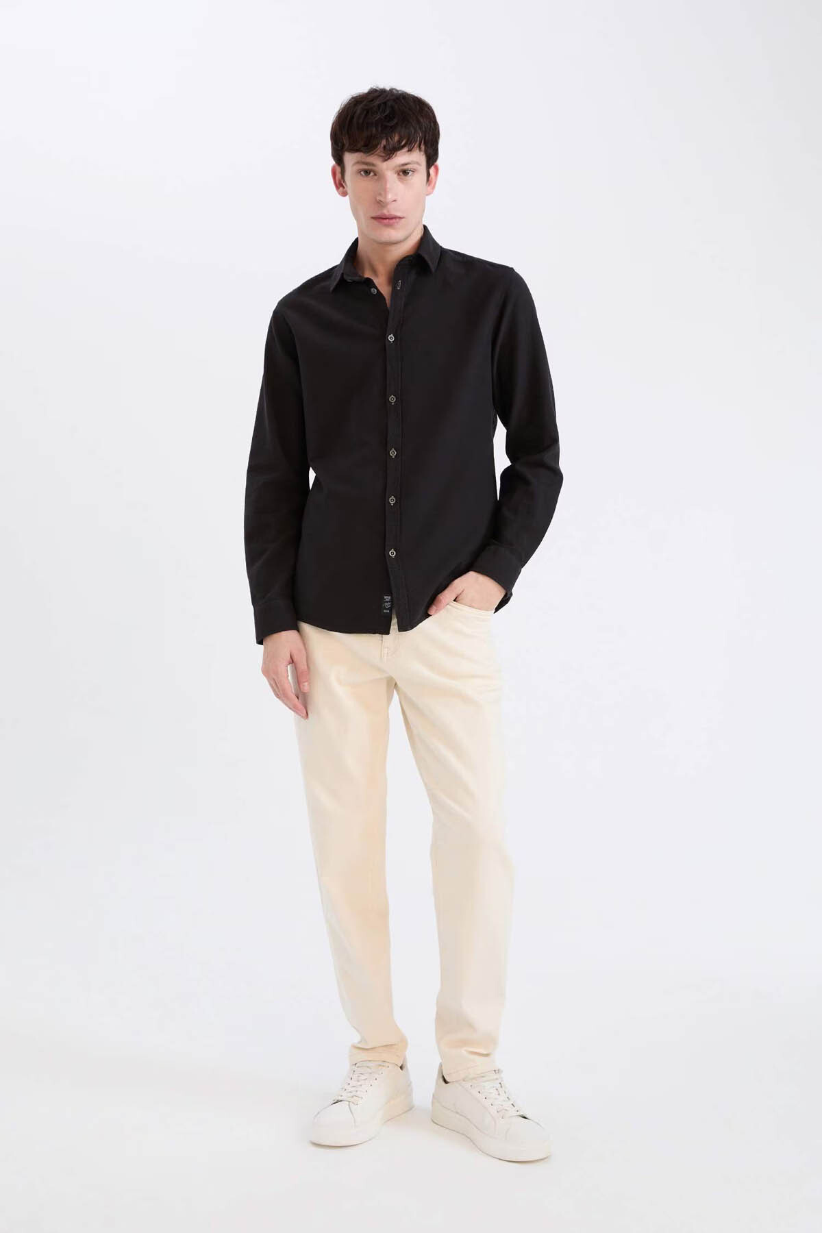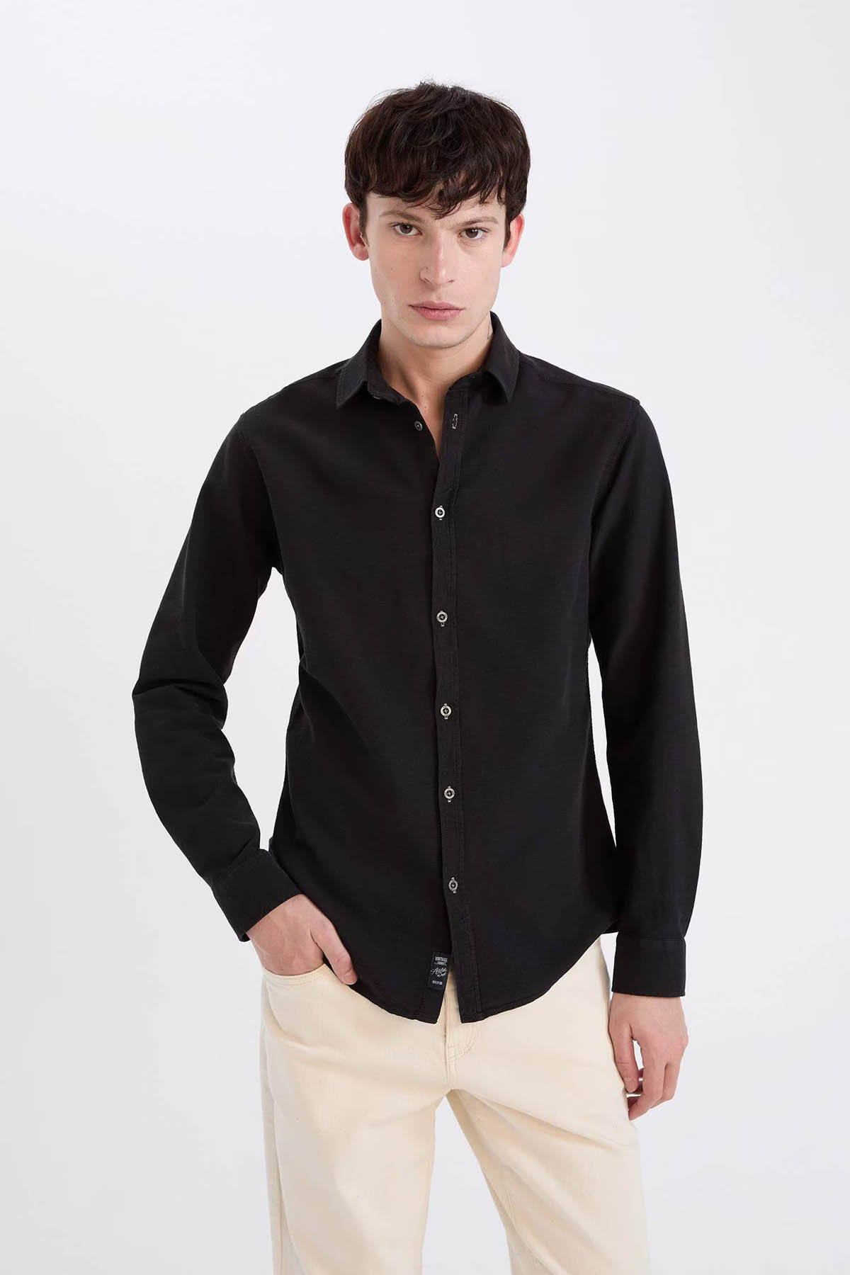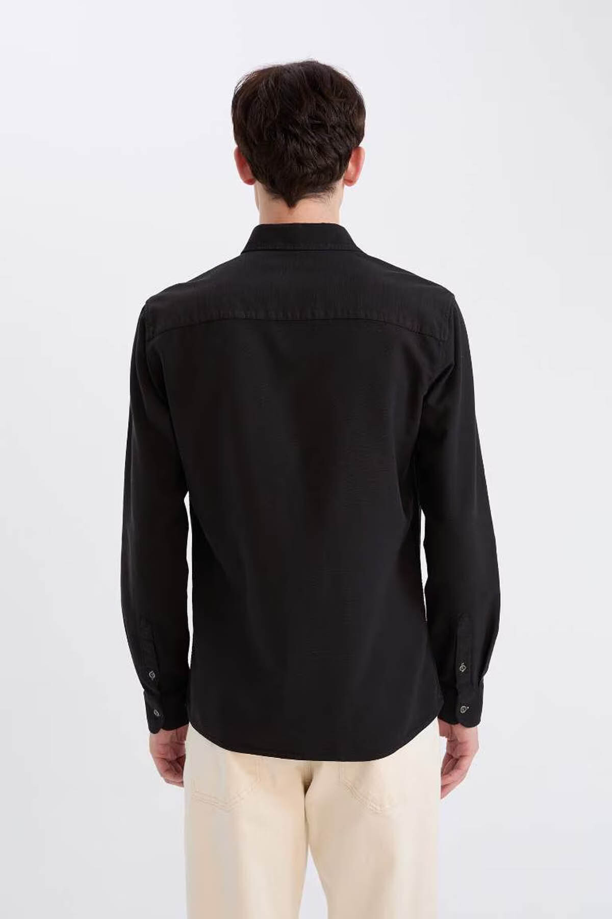 دفاکتو پیراهن مردانه اسلیم فیت نخی مشکی A4644AX/BK27