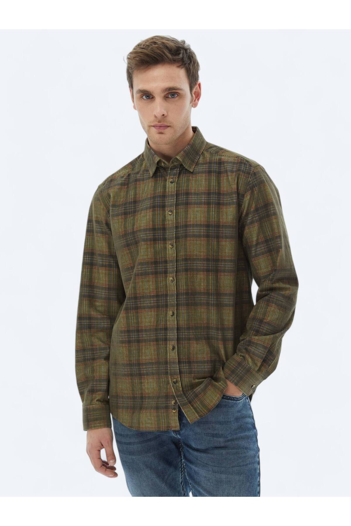 الگوی پیراهن: مخمل نخی خط: غیررسمی یقه: دکمهدار بافت یقه: مخمل تناسب: معمولی ترکیب: ۱۰۰٪ پنبه مدل: GM-5608