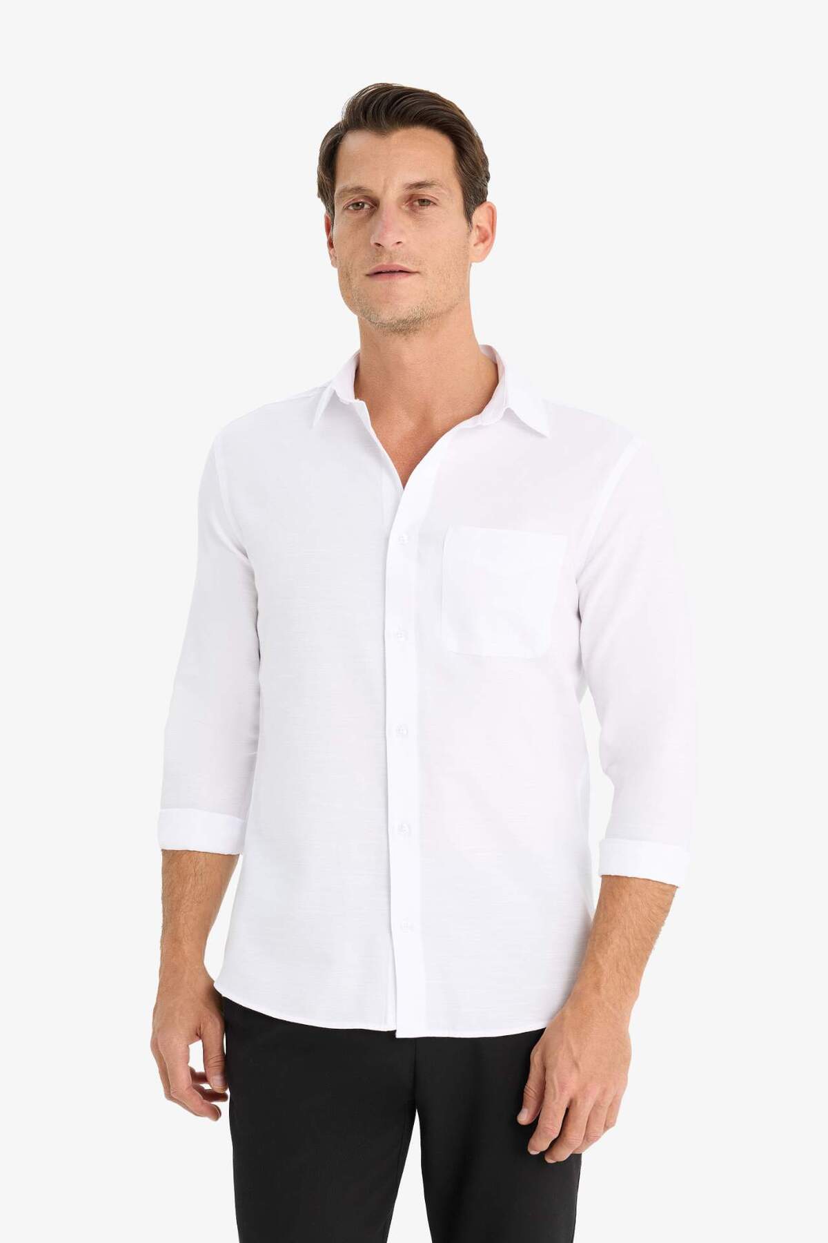 دفاکتو پیراهن آستین بلند سفید ساده یقه پولو فیت مدرن E5045AX25SM