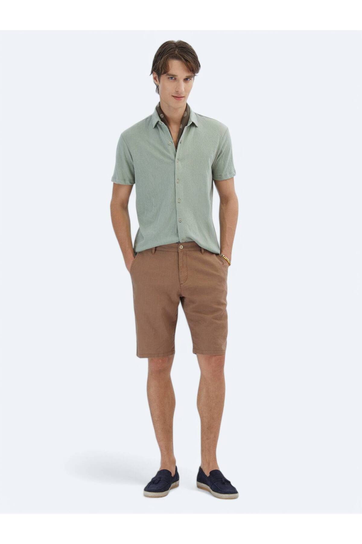 کیپ پیراهن نخی ساده خاکی روشن، فیت معمولی