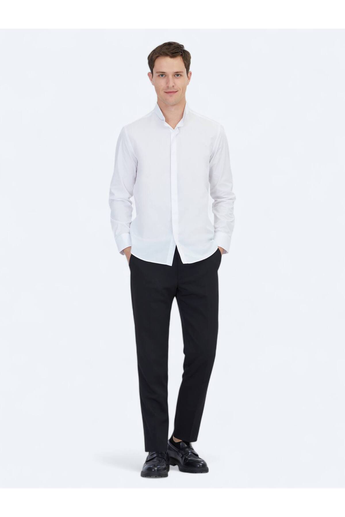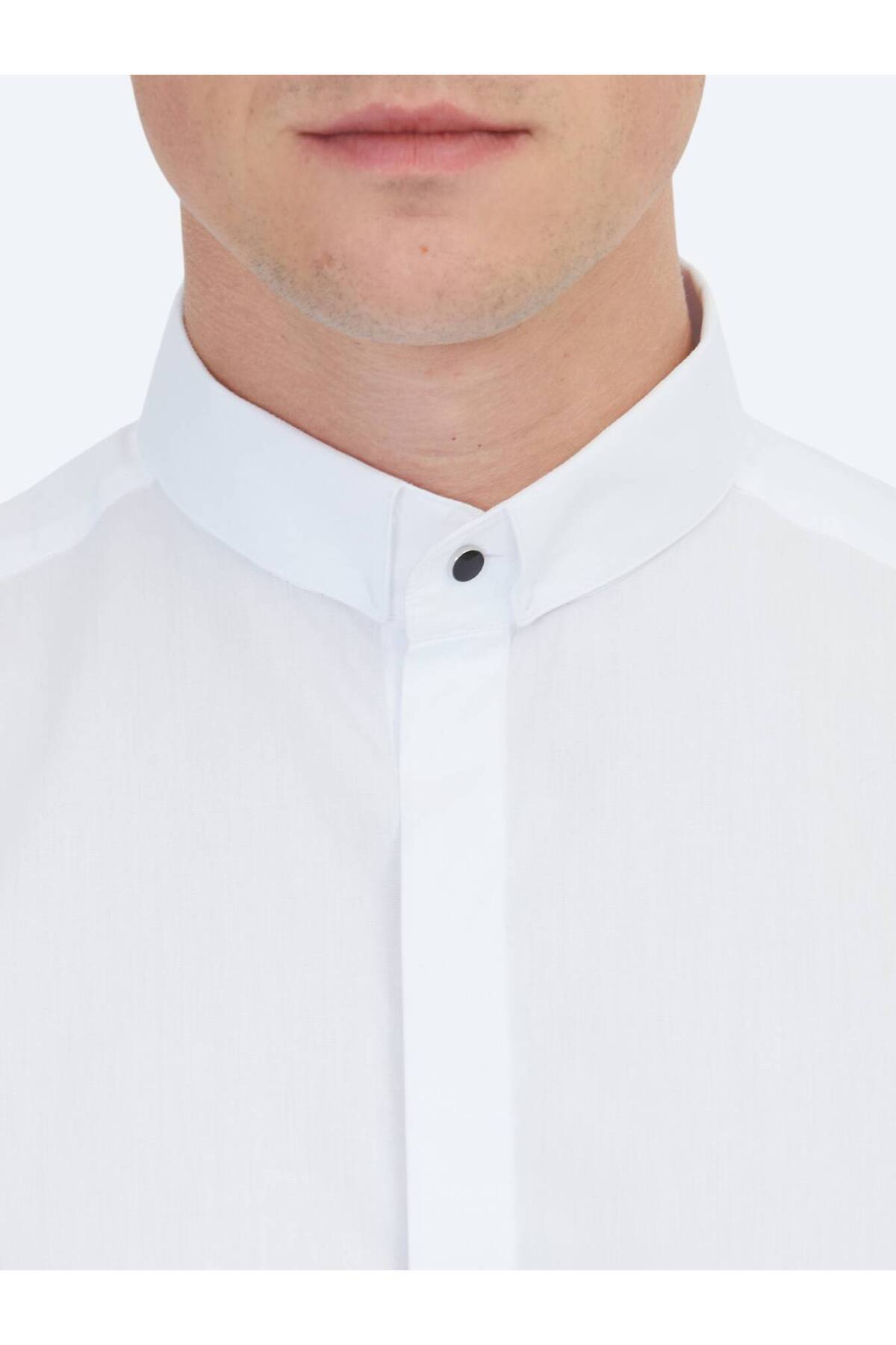 کیپ پیراهن نخی کلاسیک سفید معمولی فیت بافته شده ۱۰۰٪ نخی