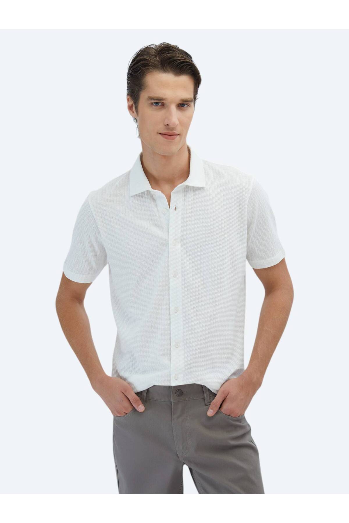 کیپ پیراهن مردانه طرحدار سفید، سایز معمولی، جنس کتان، جنس ۱۰۰٪ نخی