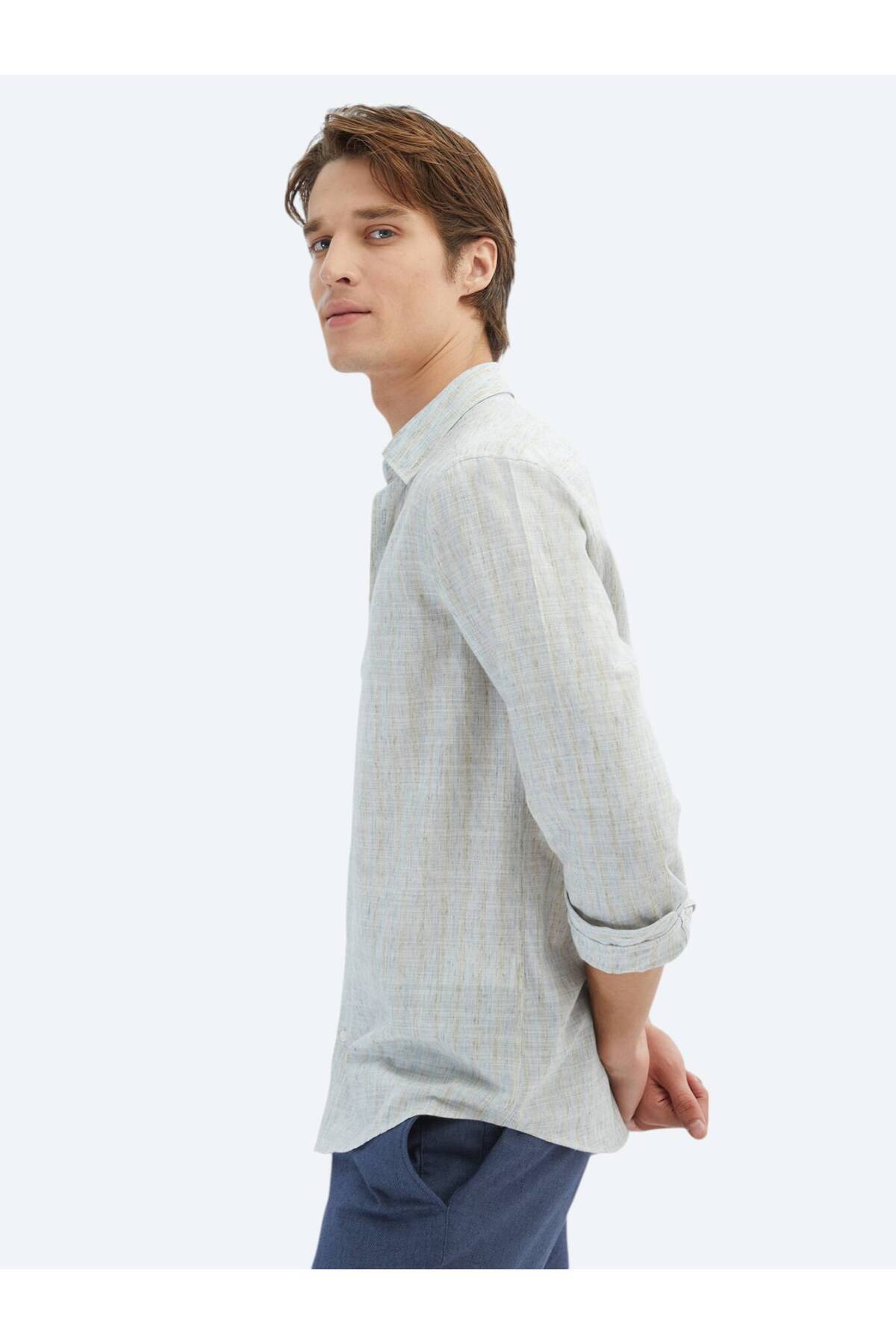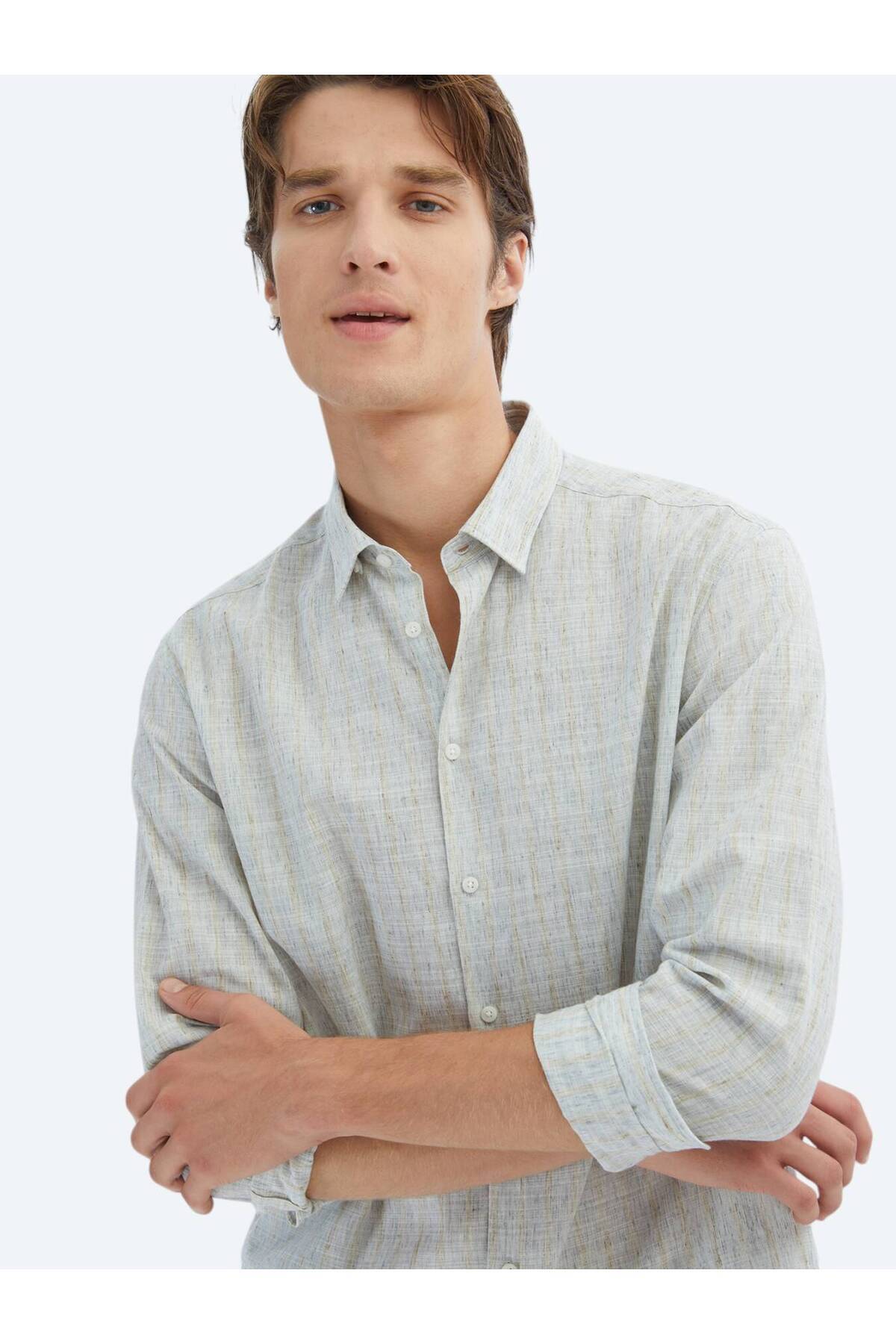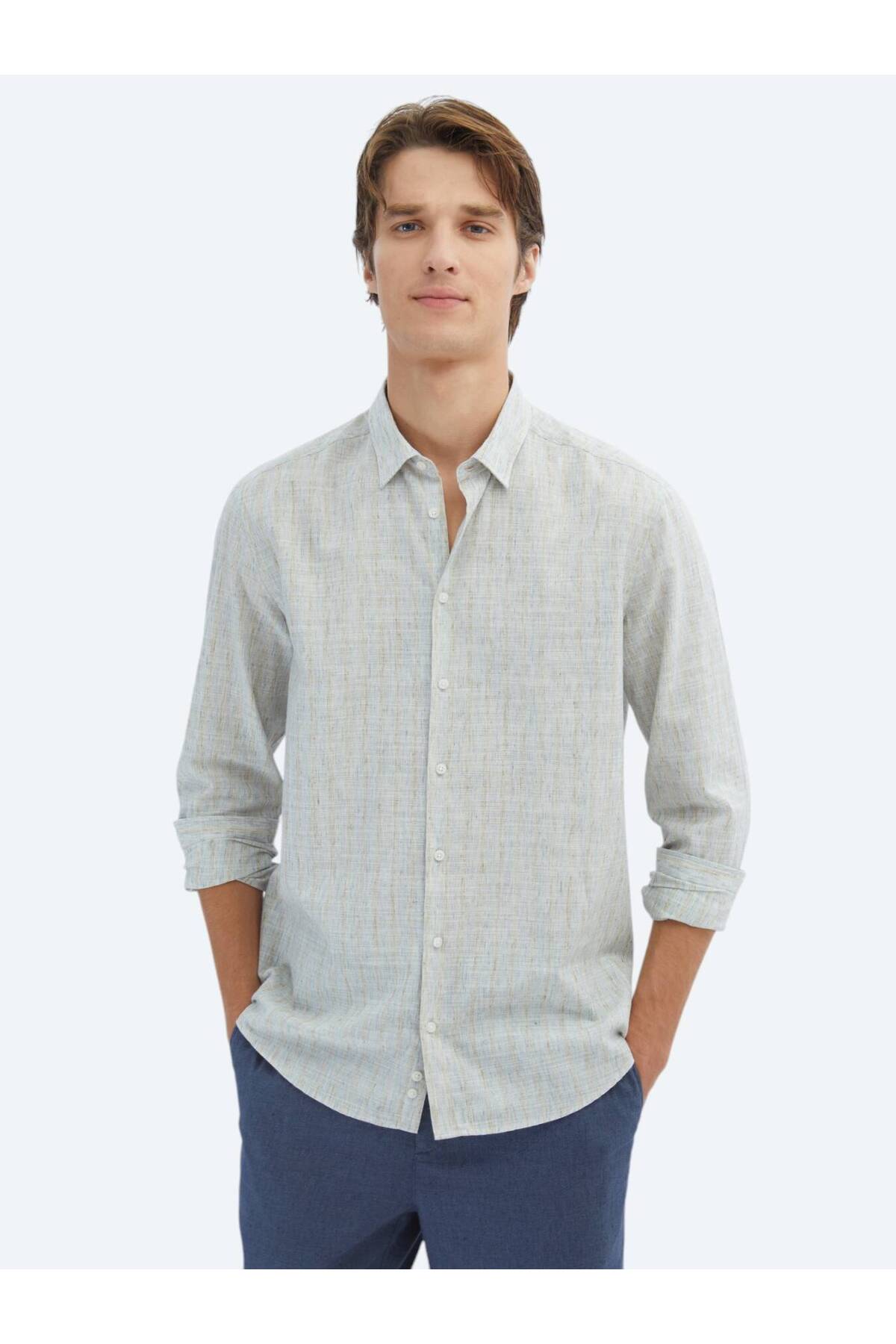 کیپ پیراهن نخی طرح راه راه آبی معمولی بافته شده