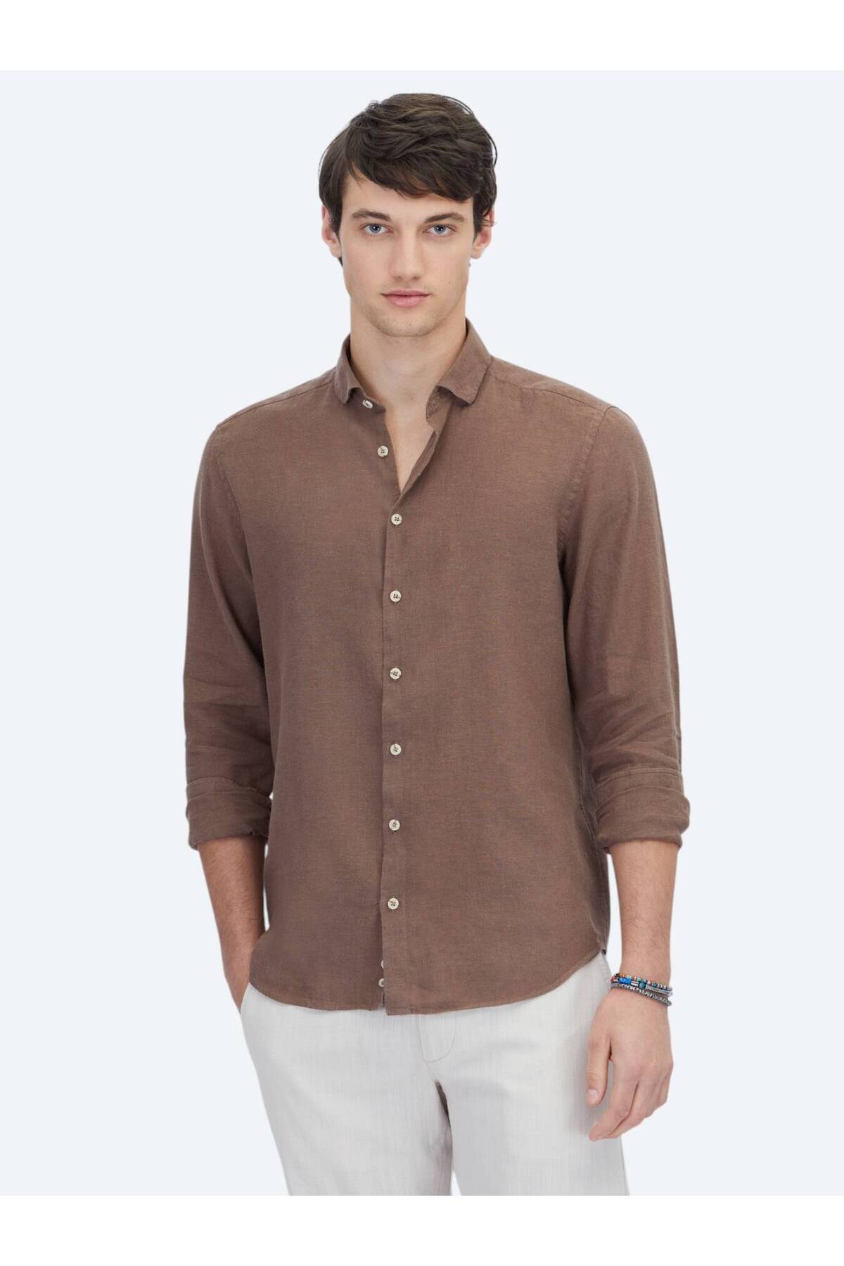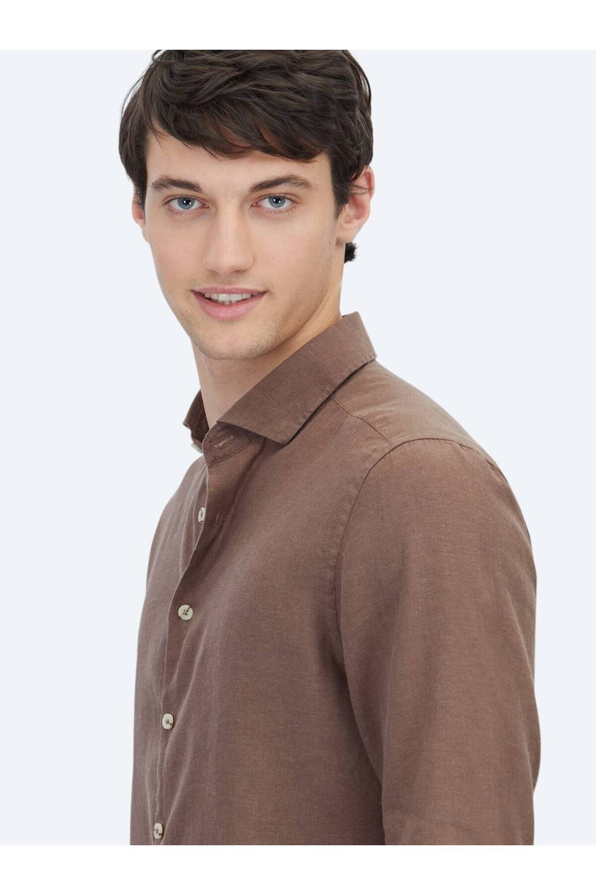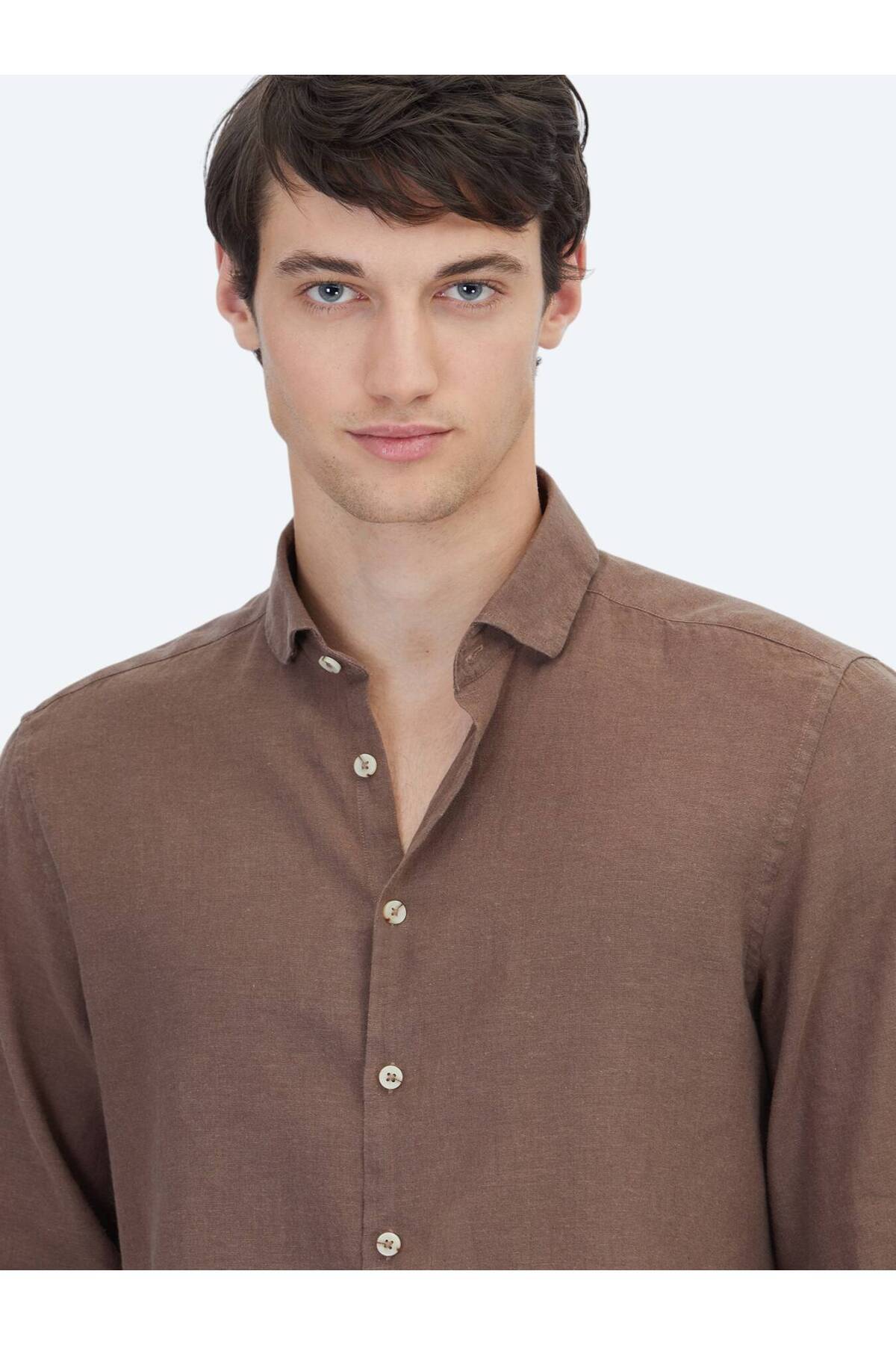 کیپ پیراهن نخی ساده قهوهای طرح معمولی بافته شده