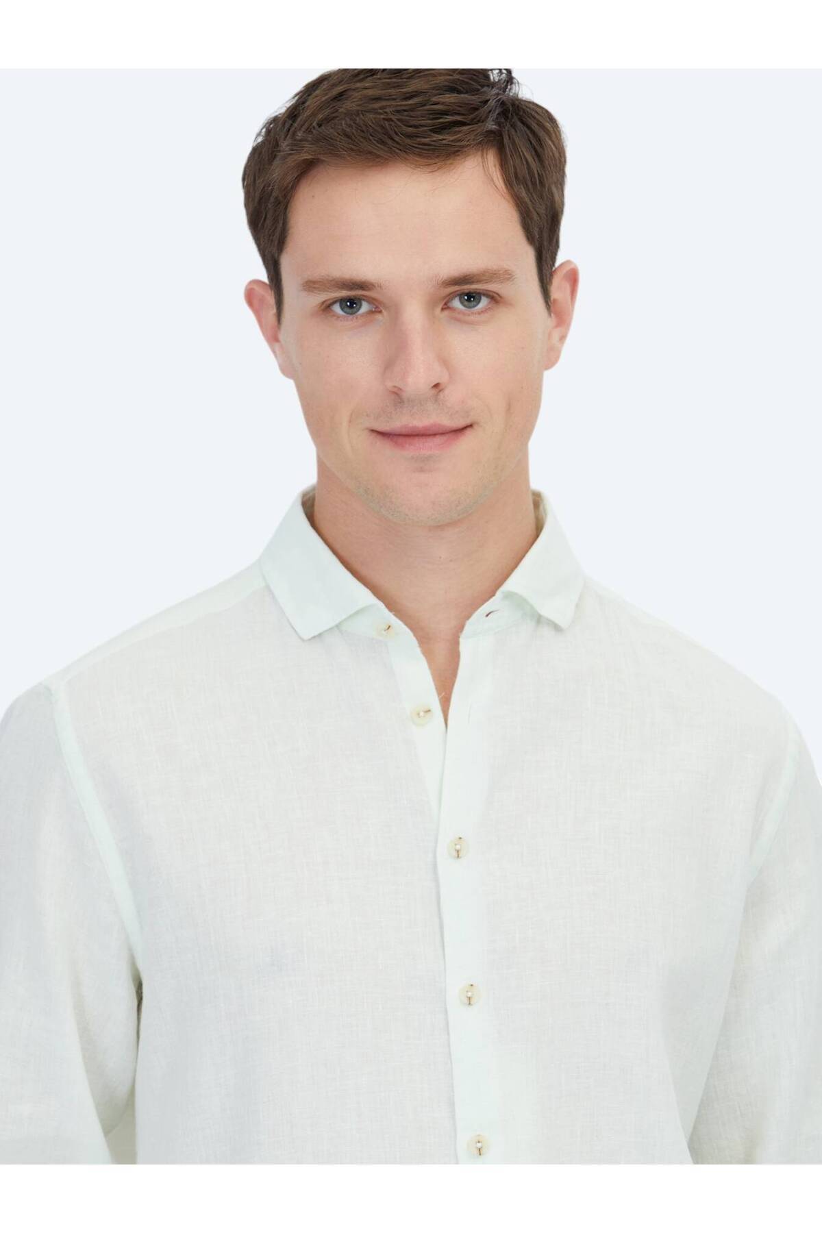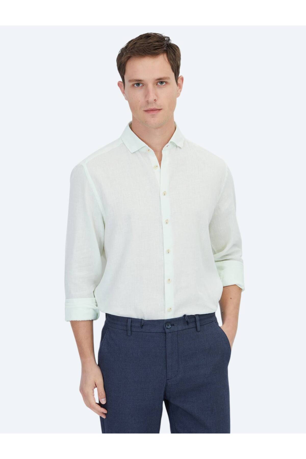 کیپ پیراهن نخی ساده و فیت معمولی طرح آکوا گرین