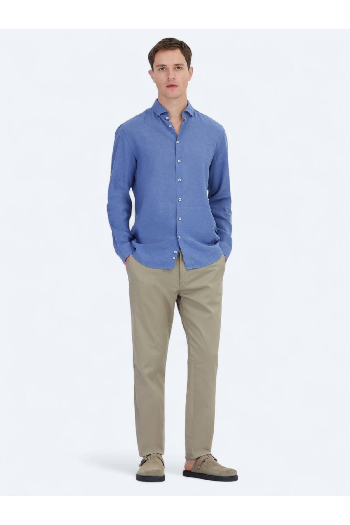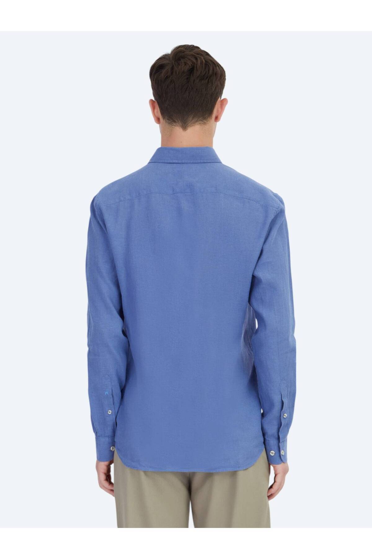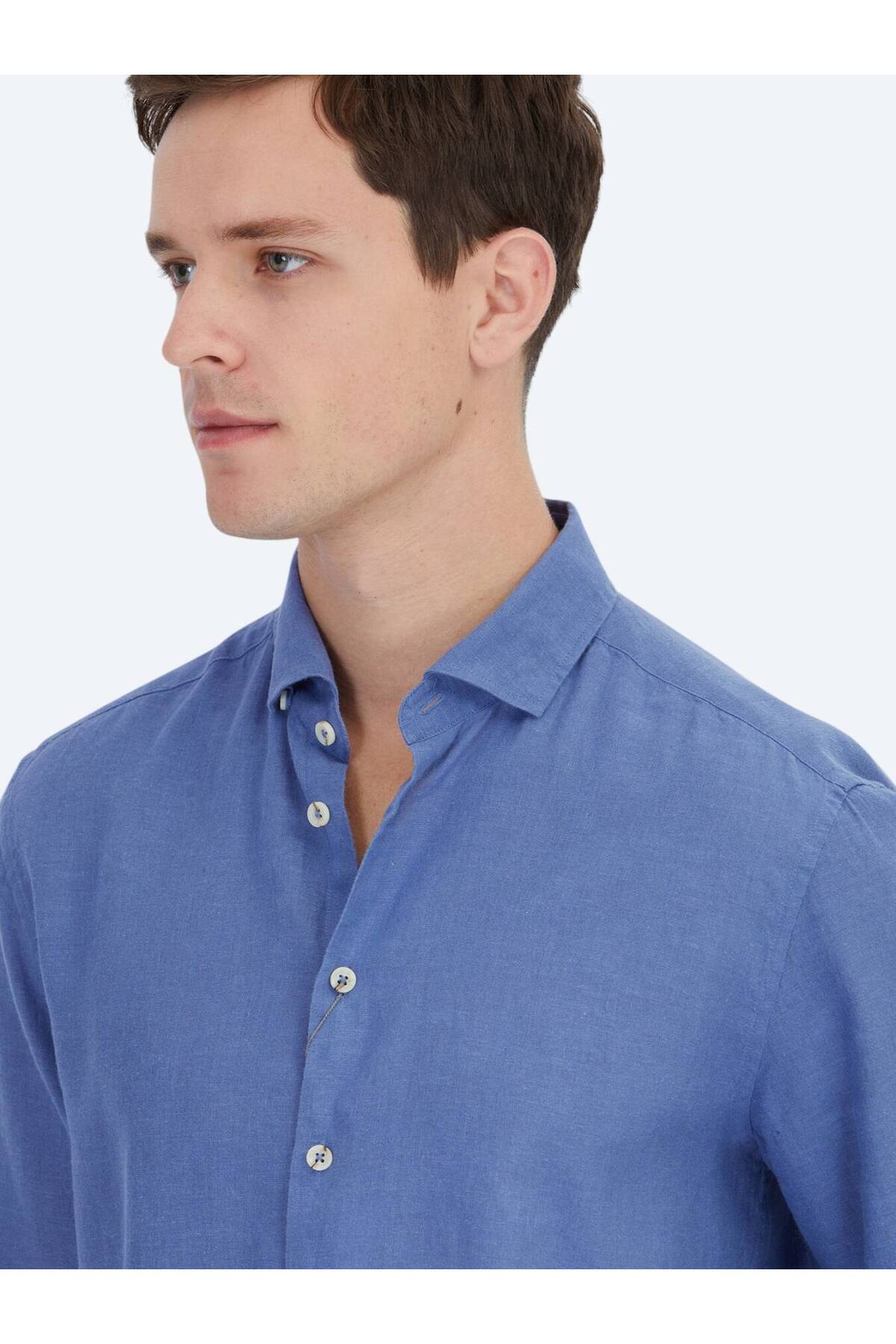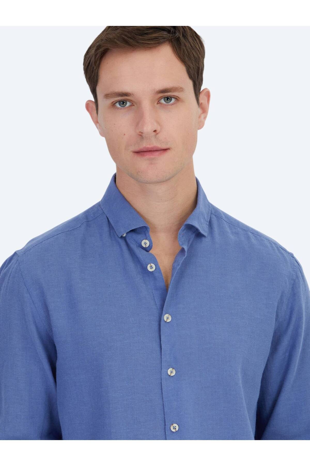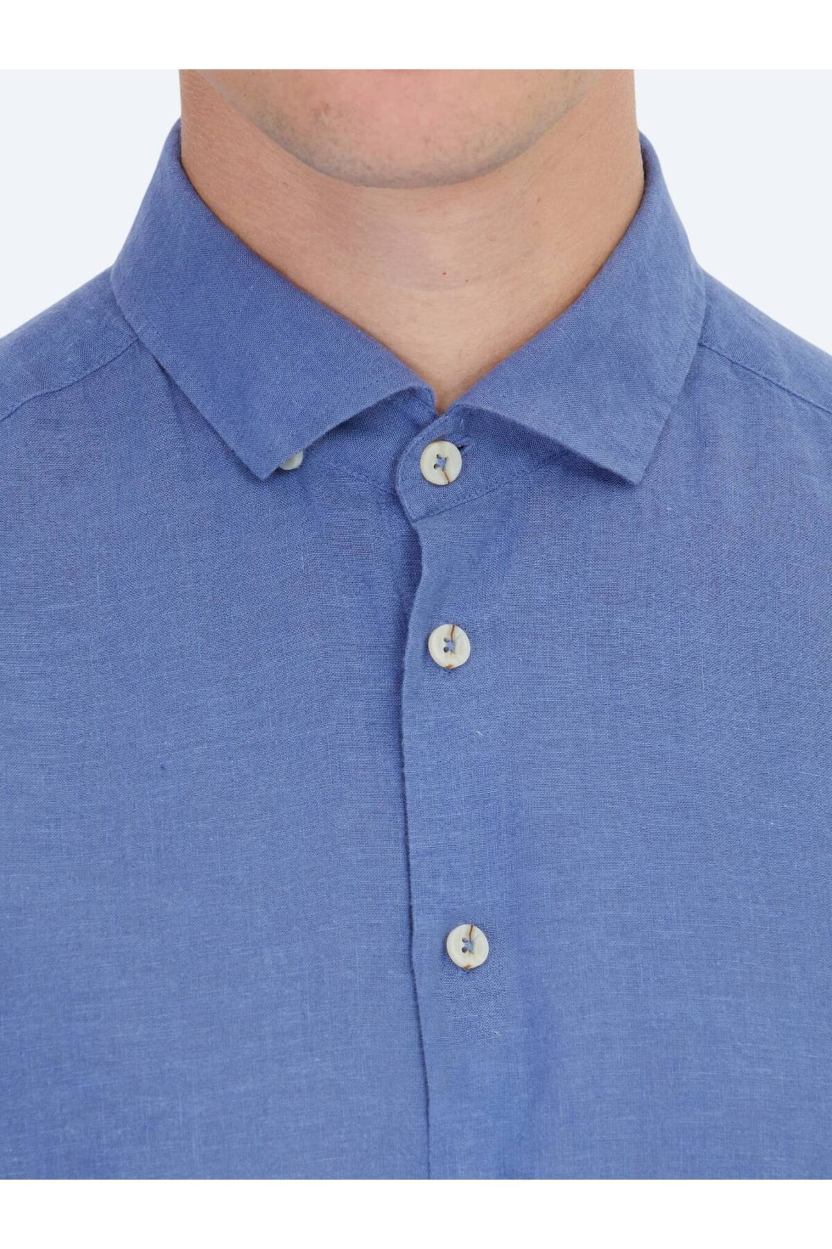 کیپ پیراهن نخی ساده و فیت معمولی طرح خلبانی آبی خلبانی