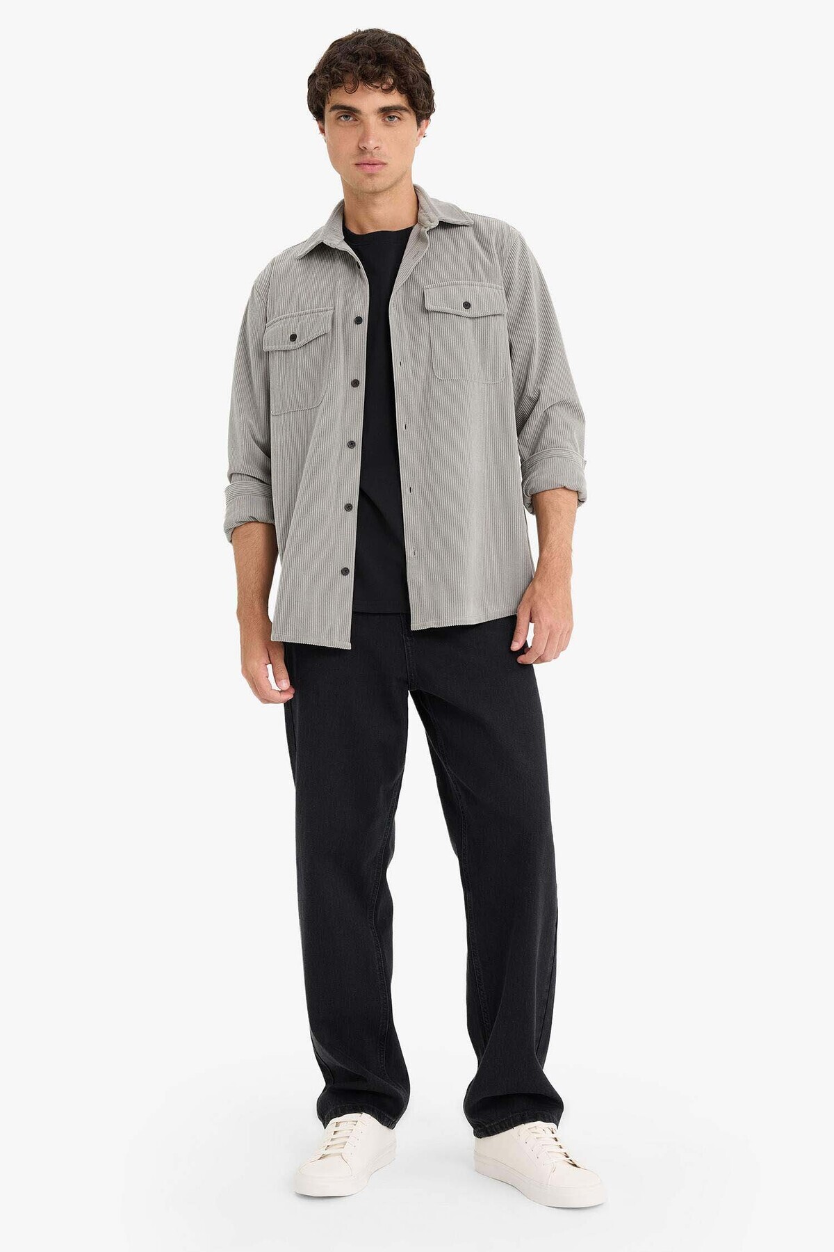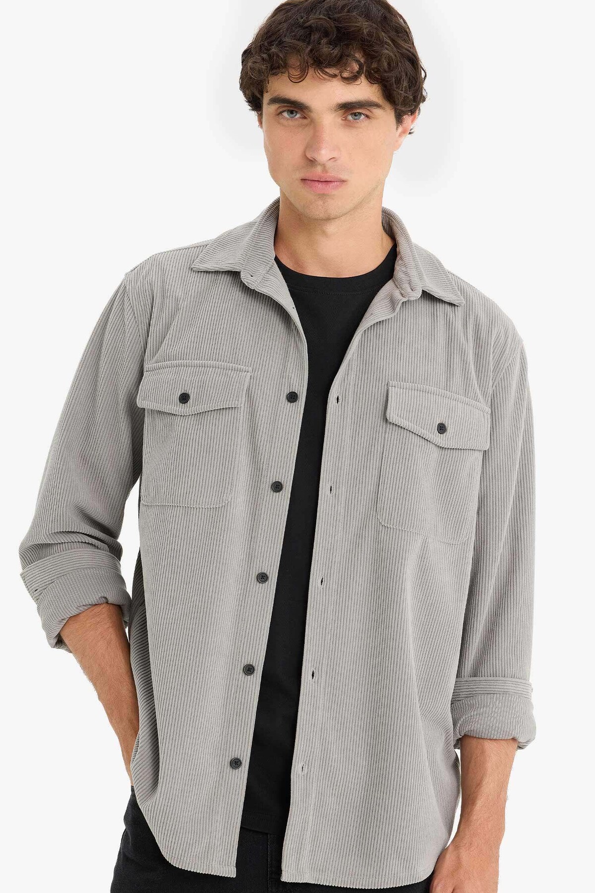 دفاکتو پیراهن مردانه خاکستری مخمل کبریتی سایز معمولی F1518AX/GR454