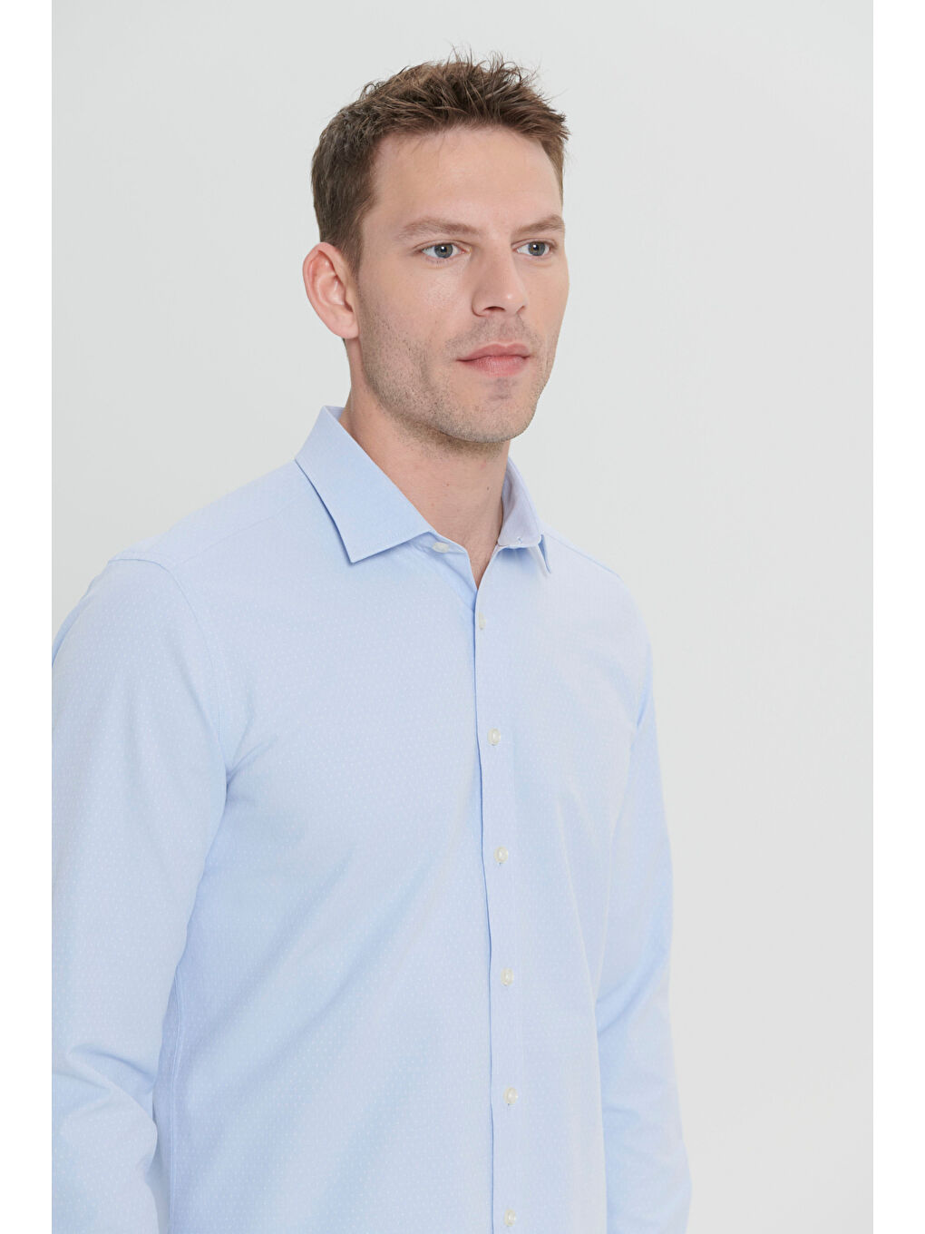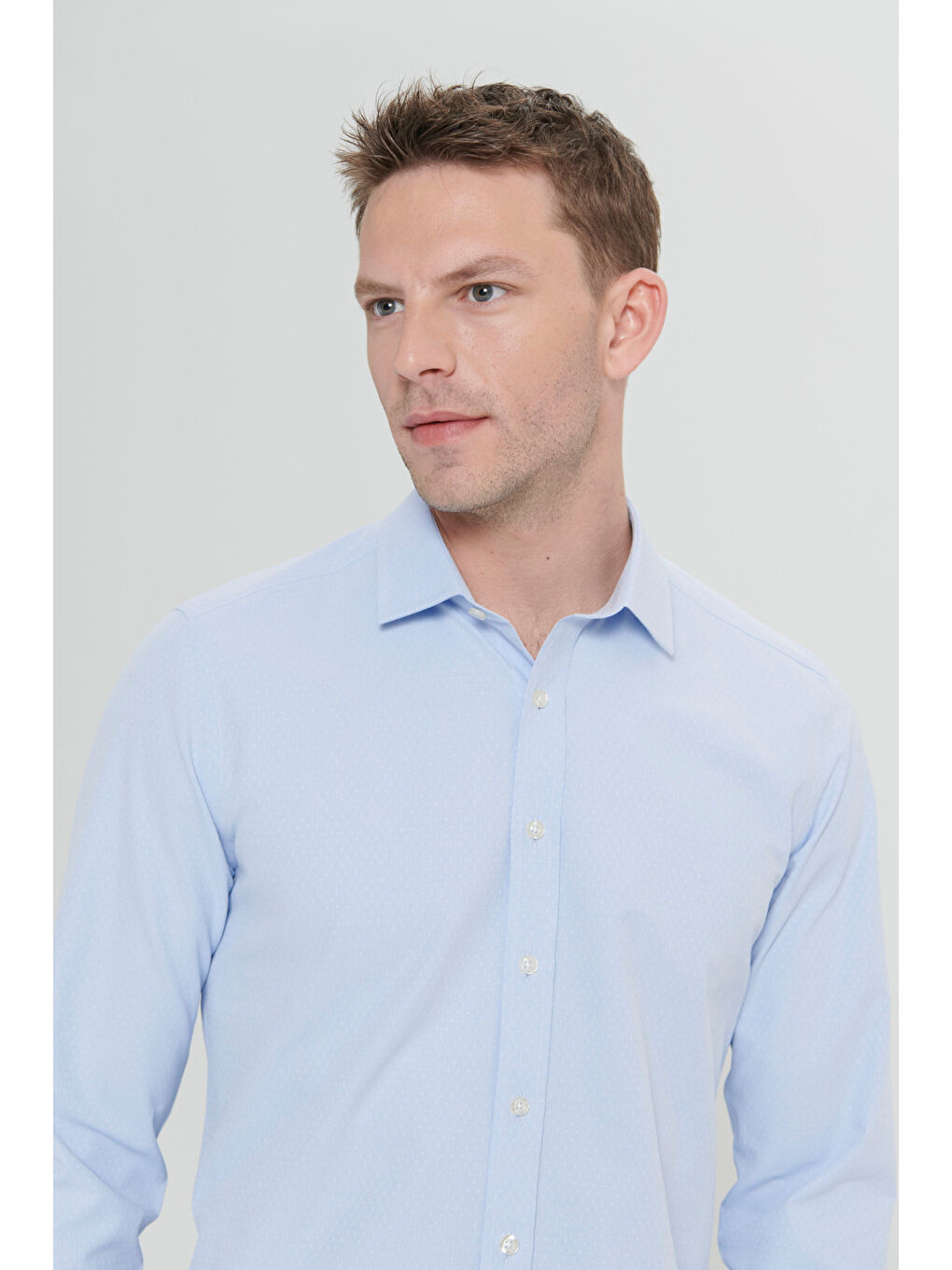پیراهن دوبی نخی یقه کلاسیک باریک مردانه آبی روشن