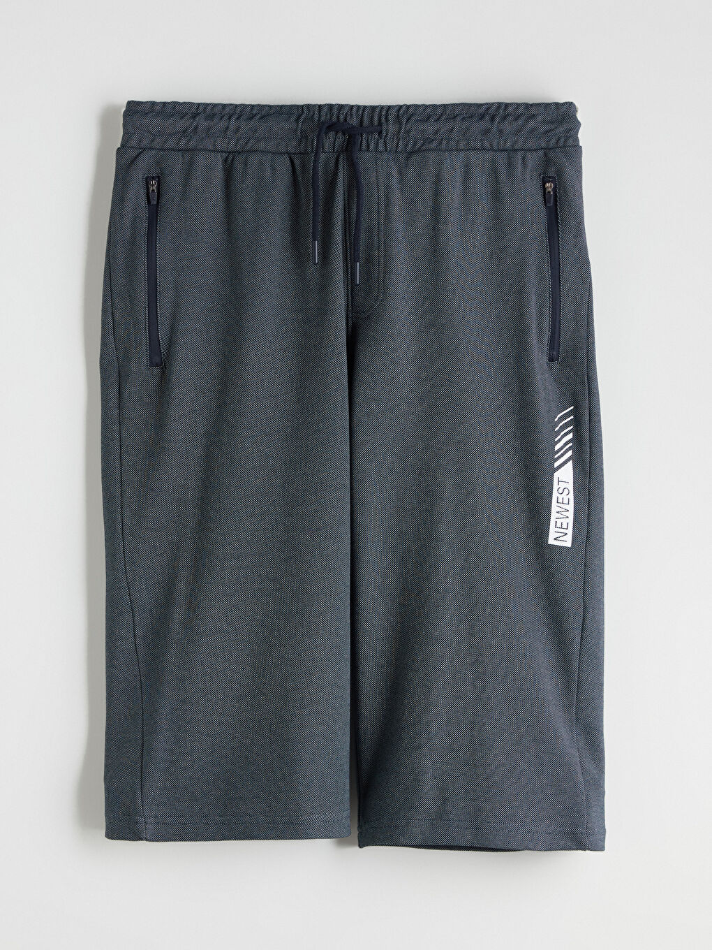 شلوارک مردانه با کمر کشی و بند قابل تنظیم از پارچه اینترلاک ساخته شده است. این شلوارک دارای جیبهای زیپدار در کنار و لبهی طرحدار است.