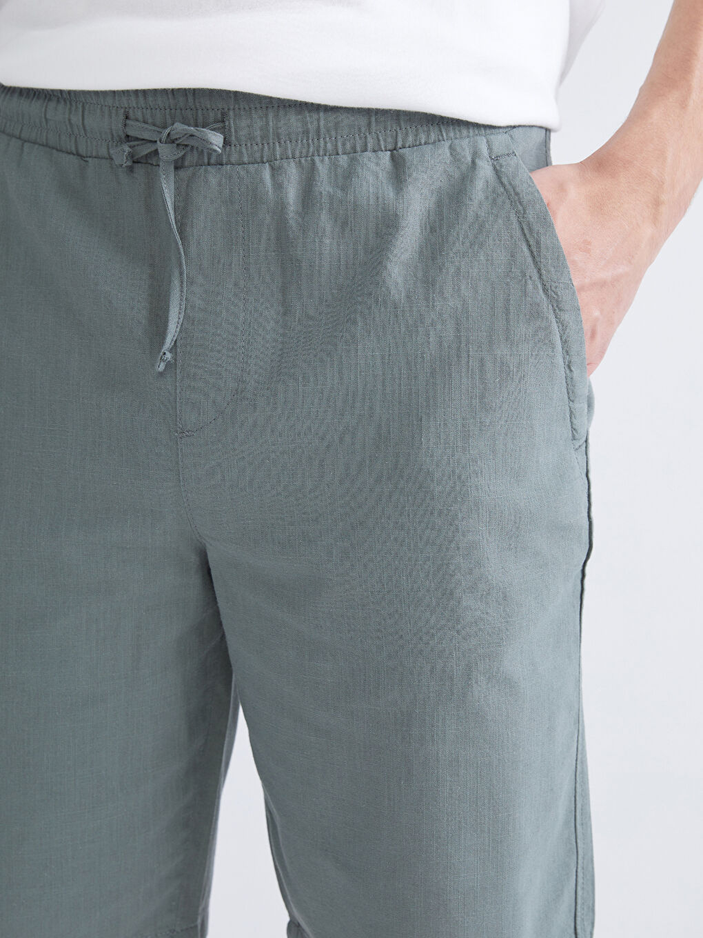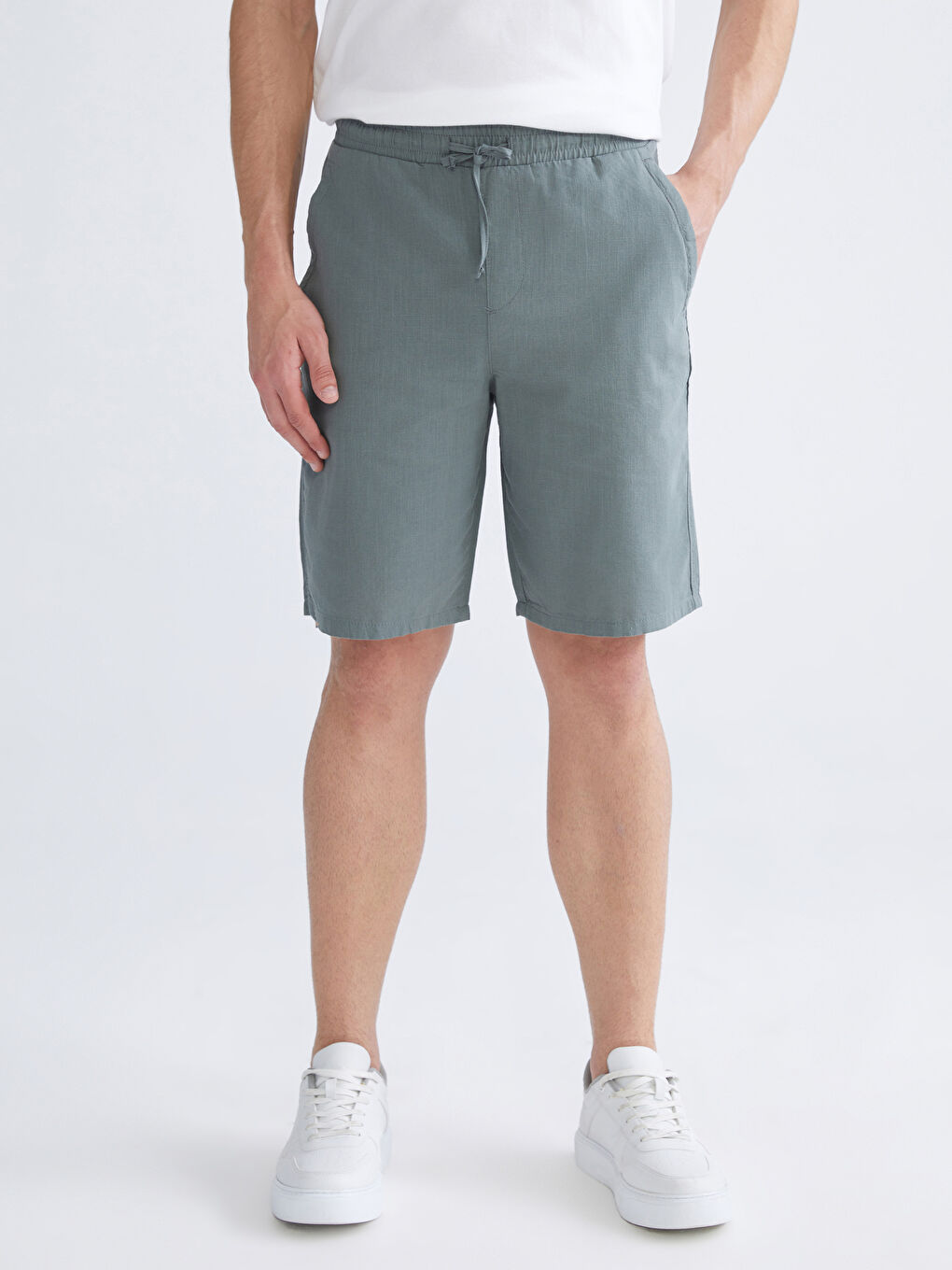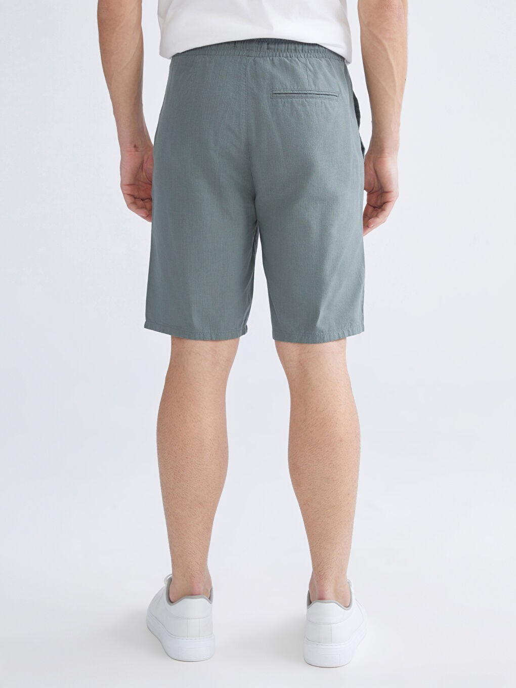شورت مردانه با طرحی استاندارد از پارچه نخی ساخته شده است.