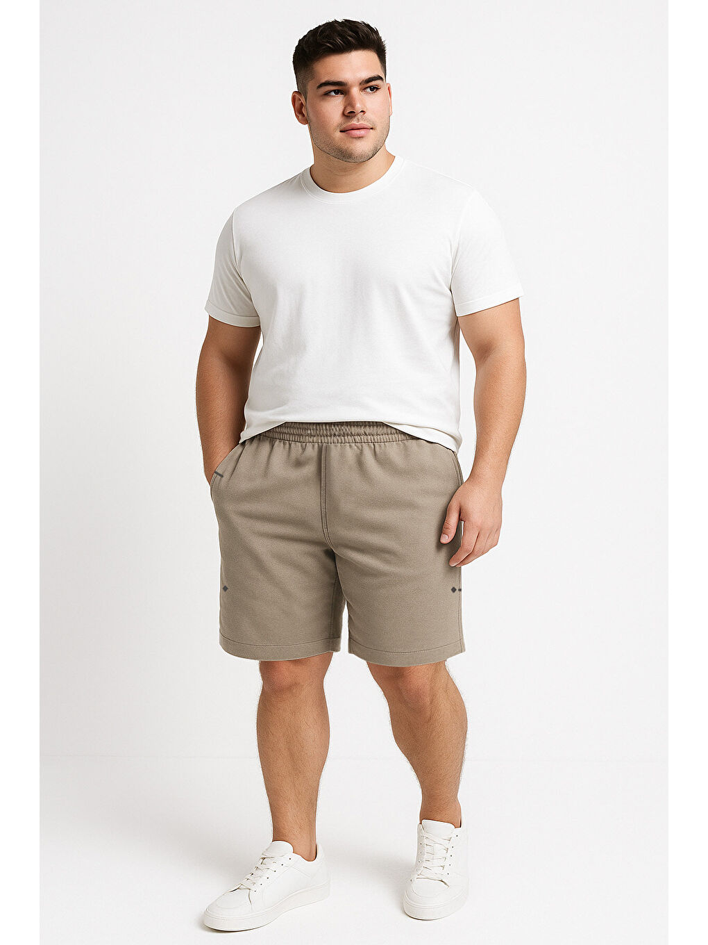 شلوارک مردانه راحت، جیبدار و بندی، بژ تیره، سایز بزرگ – 81297