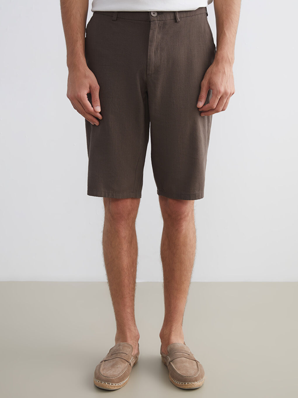 شورت مردانه پوپلین استاندارد فیت قهوه ای