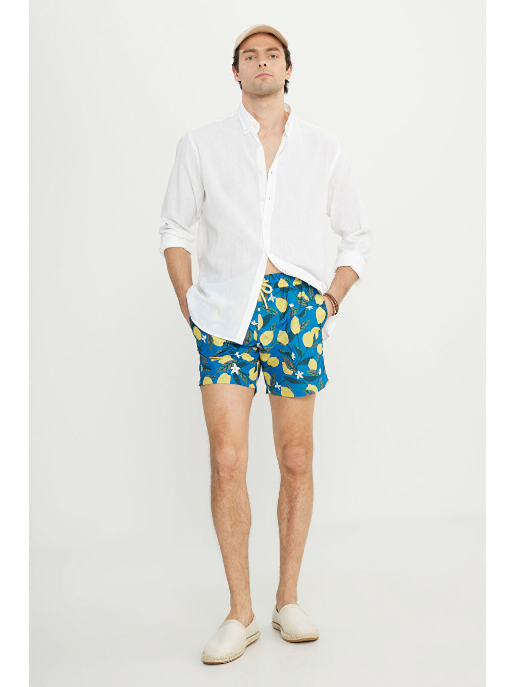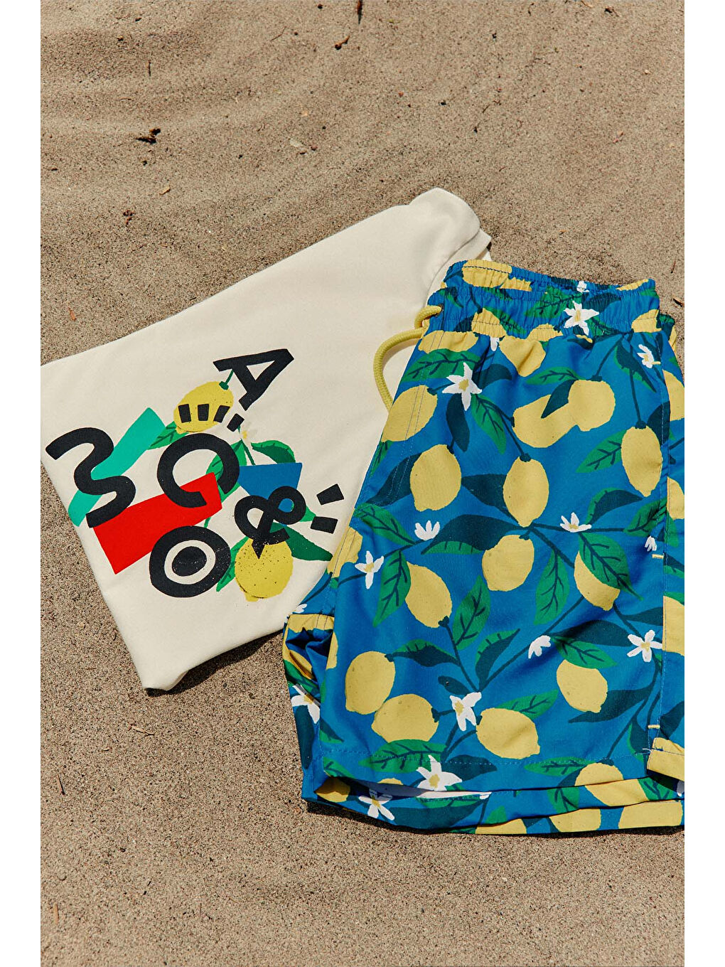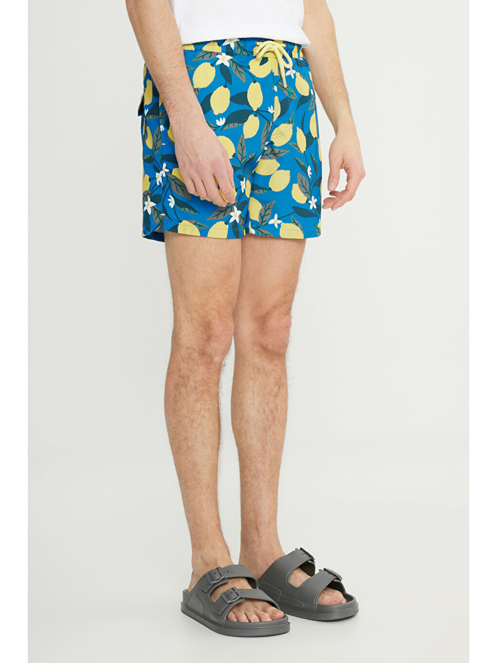 100% پلی استر، طرحدار آبی-زرد، تناسب استاندارد، کمر معمولی، جیبهای جانبی، اندازه محصول: L، قد مدل: 1.89 وزن: 80 کیلوگرم، ACCo / Altınyıldız Classics Fit Normal Cut Gingeding Quick Driking Patterned Swimsuit, Swim Swim Product: ET4724200009MSR.