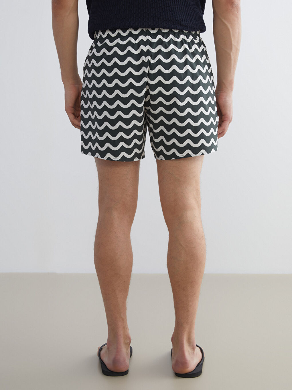 شورت شنا مردانه با کمر کشدار از پارچه میکروفایبر طرح دار با قد کوتاه ساخته شده است.