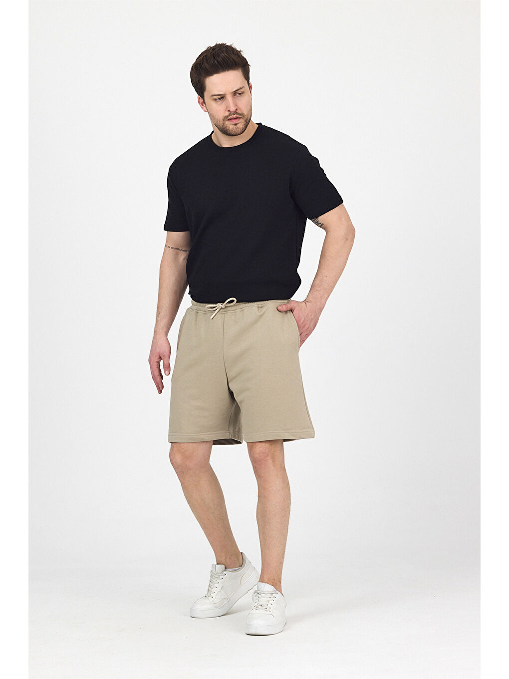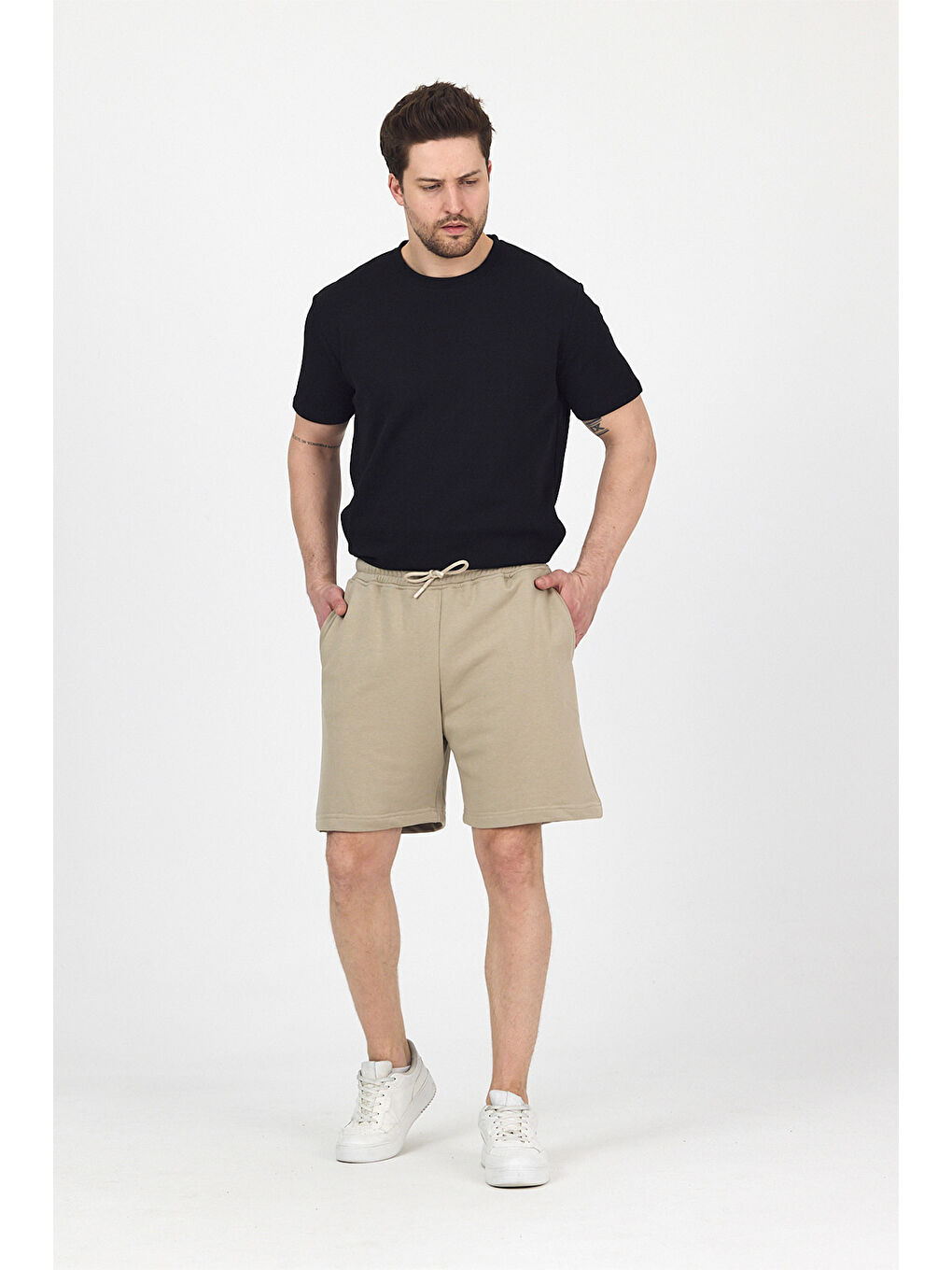 شلوارک مردانه از مجموعه GothamVibes Timeless. نوع پارچه: بافتنی، با حس نرمی. محصولات ما هنگام شستشو آب نمیروند. مدل: قد ۱۸۸ سانتیمتر / ۷۶ کیلوگرم. سایز محصول: بزرگ.