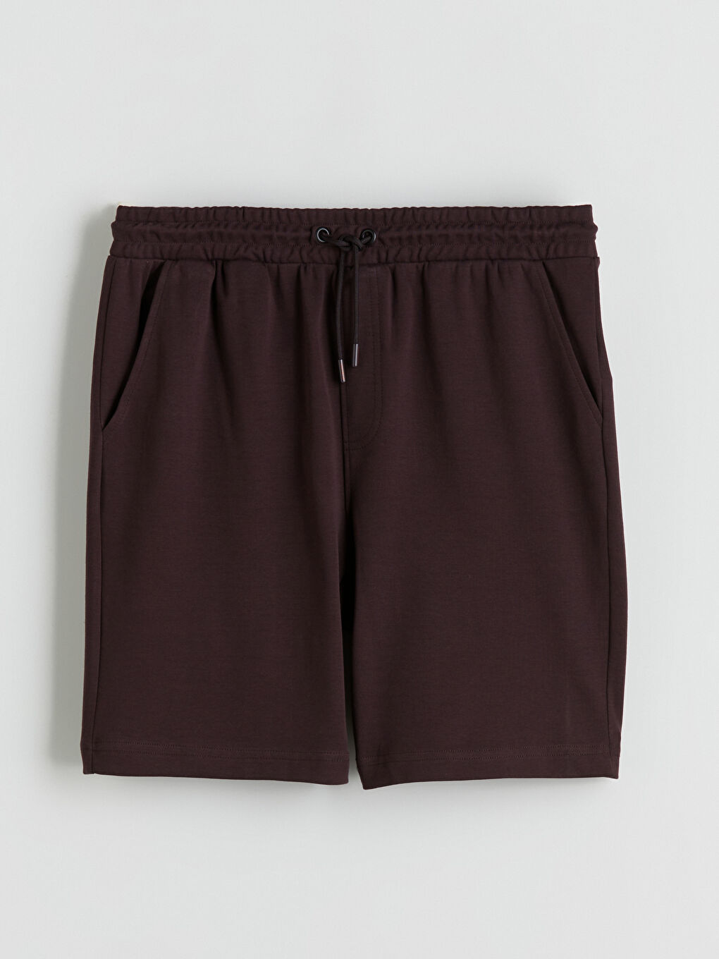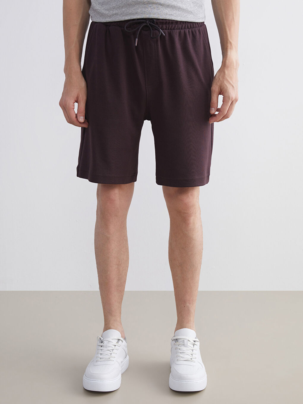 شورت مردانه با کمر الاستیک و بند کشی قابل تنظیم، ساخته شده از پارچه 100% پنبه ای و جیب های کناری.