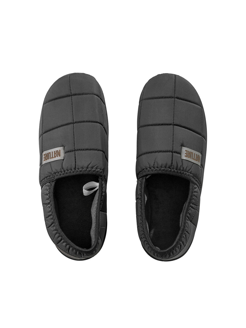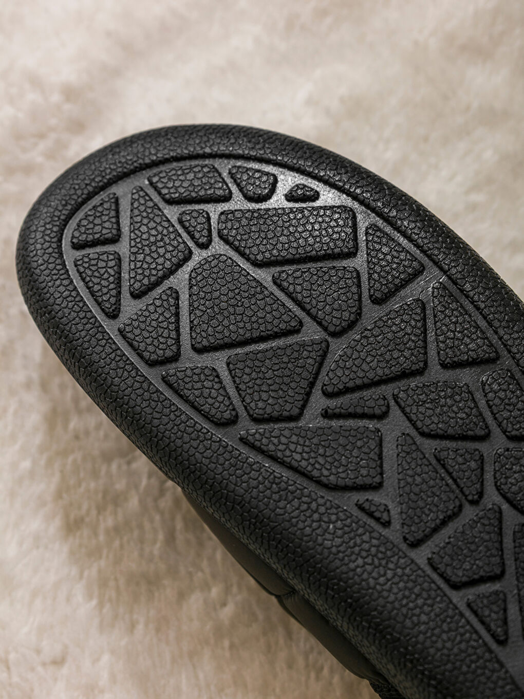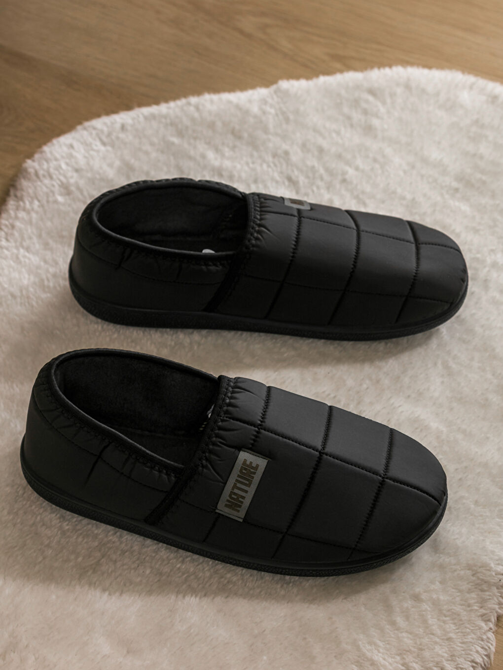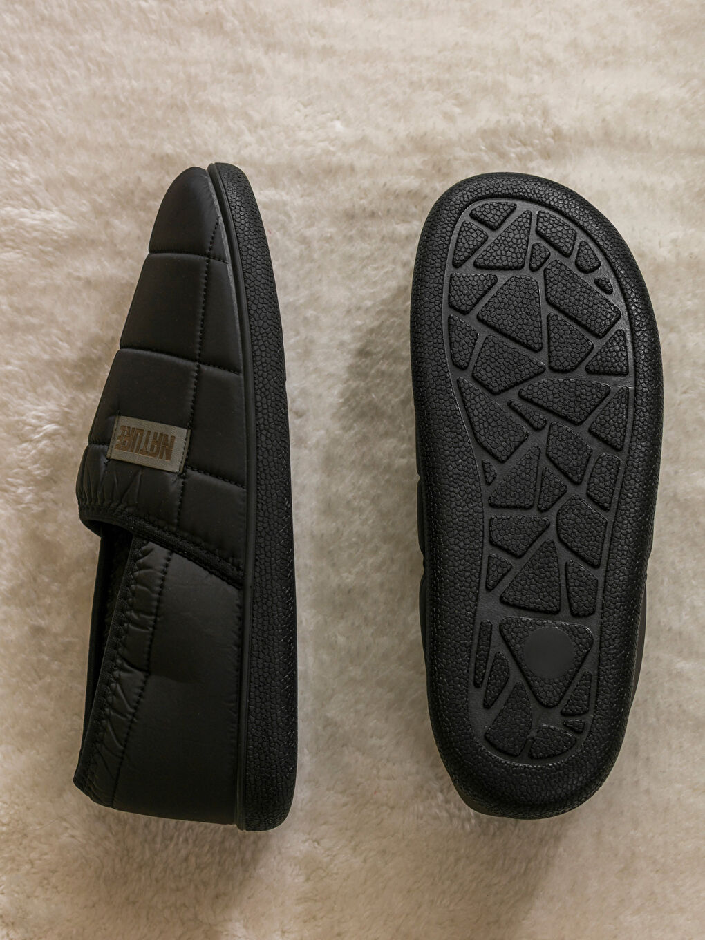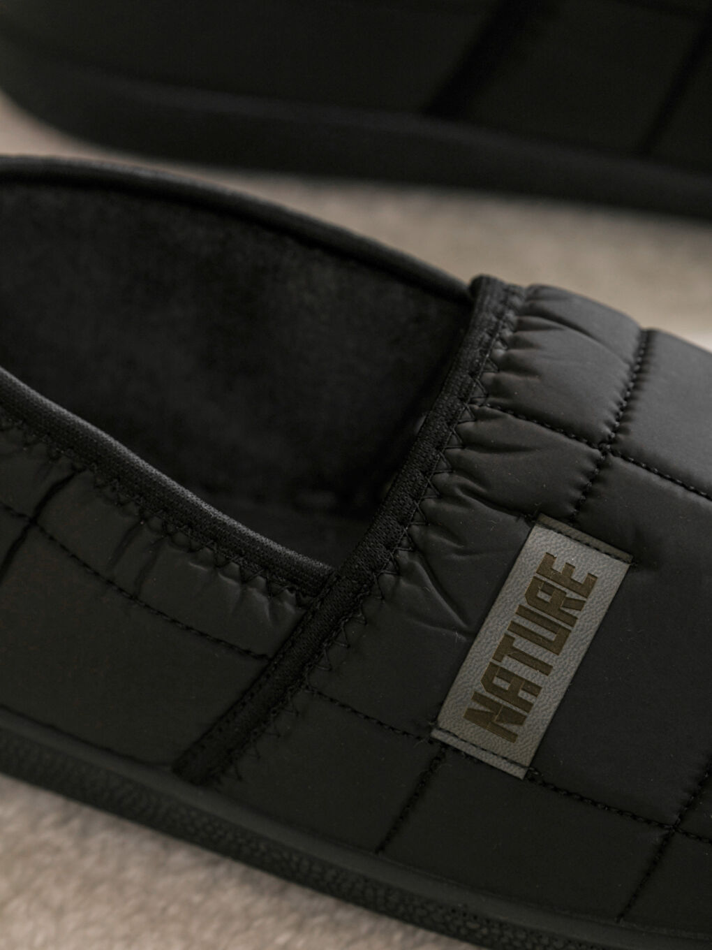 دمپایی‌های مردانه جلو بسته طرح‌دار لحافی، دارای طرح آستر داخلی و جزئیات برچسب در کنار آن هستند.