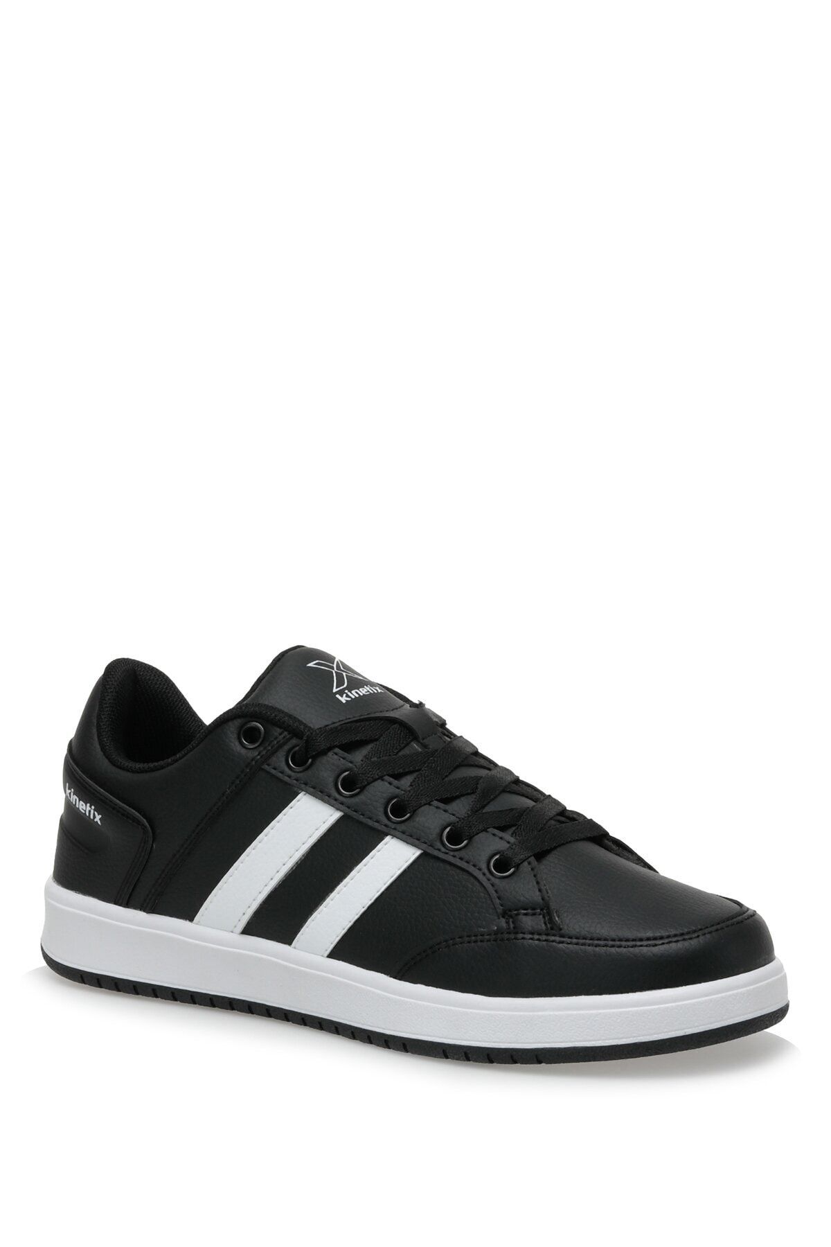 کفش ورزشی مردانه Kinetix Kort Pu 3FX مشکی سفید رنگ مشکی سفید جنس بیرونی چرم مصنوعی جنس داخلی بدنه داخلی آنتی باکتریال زیره قالب معمولی زیره کامل ارتوپدی بدون لغزش
