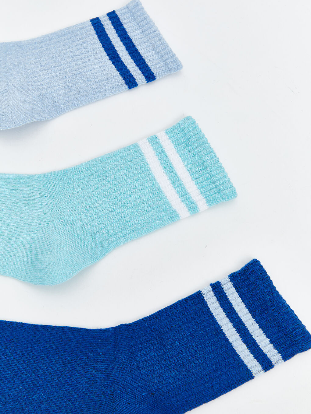جوراب مچ پا پسرانه راه راه آبی سرمه ای 3 بسته