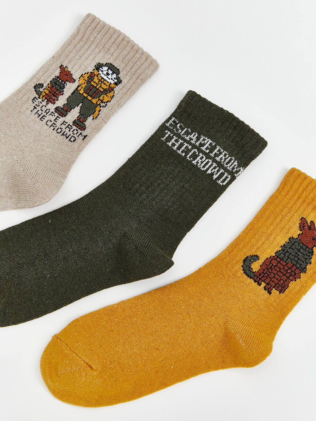 جوراب های پسرانه 3 تایی که از پارچه پنبه ای انعطاف پذیر ساخته شده اند، طرحی طرح دار دارند.