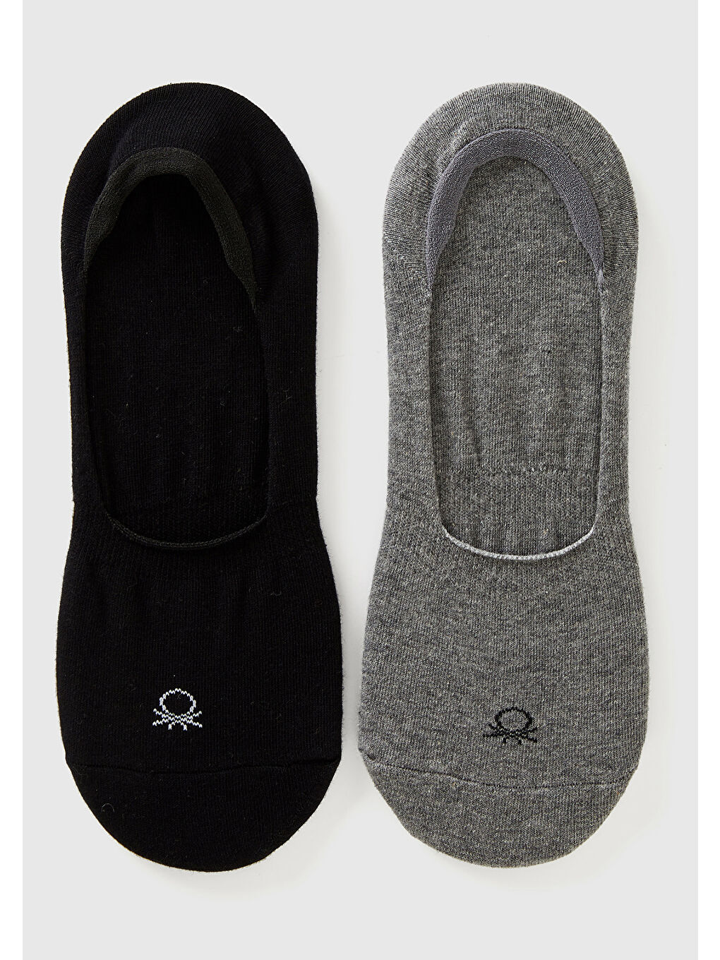 ست جوراب نامرئی 2 بسته دوزی لوگوی ملانژ خاکستری تیره یونیسکس