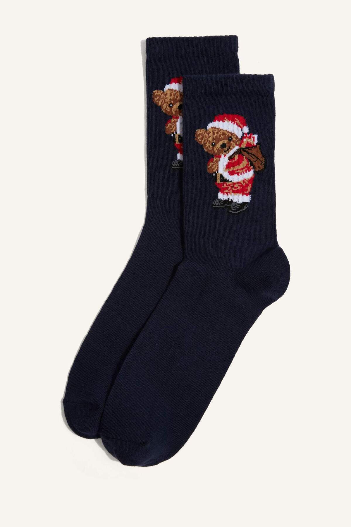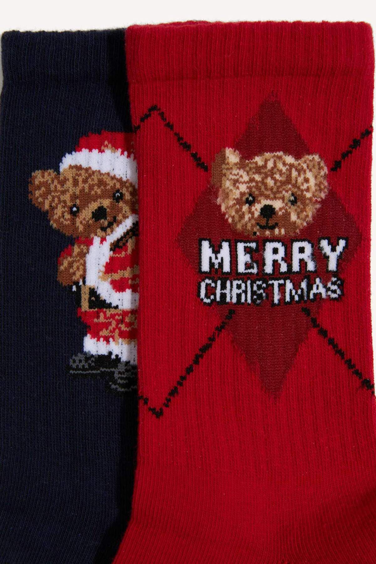 دفاکتو جوراب نخی بلند مردانه طرح خرس کریسمس G3908AXNS بسته 2 عددی