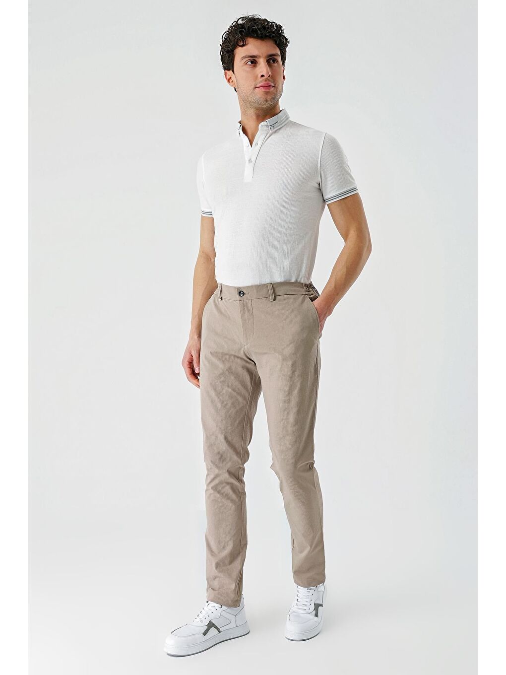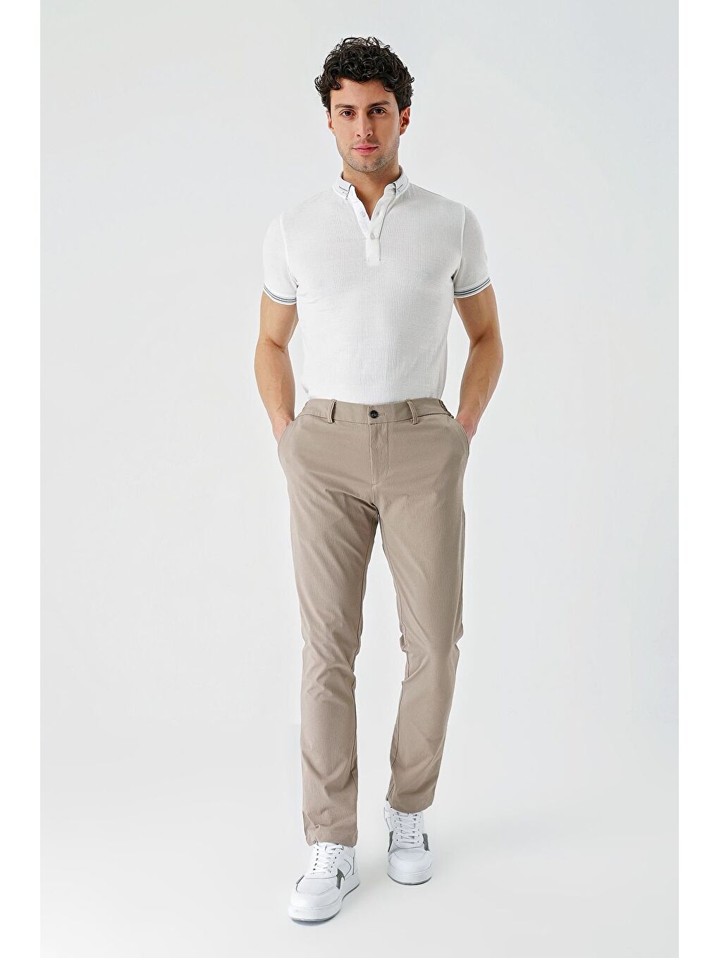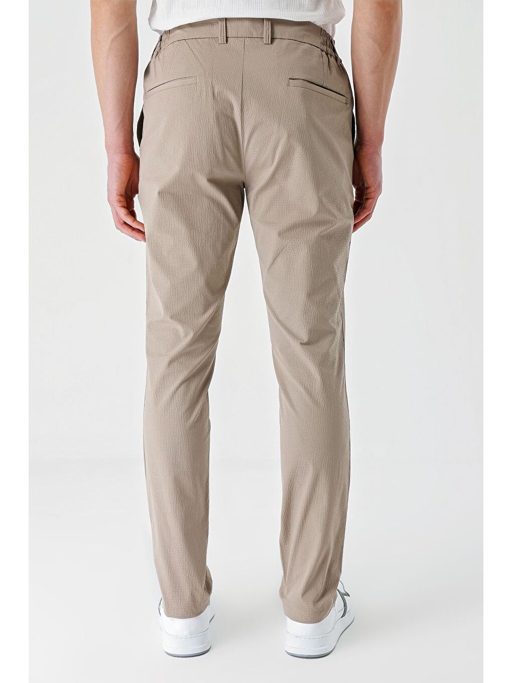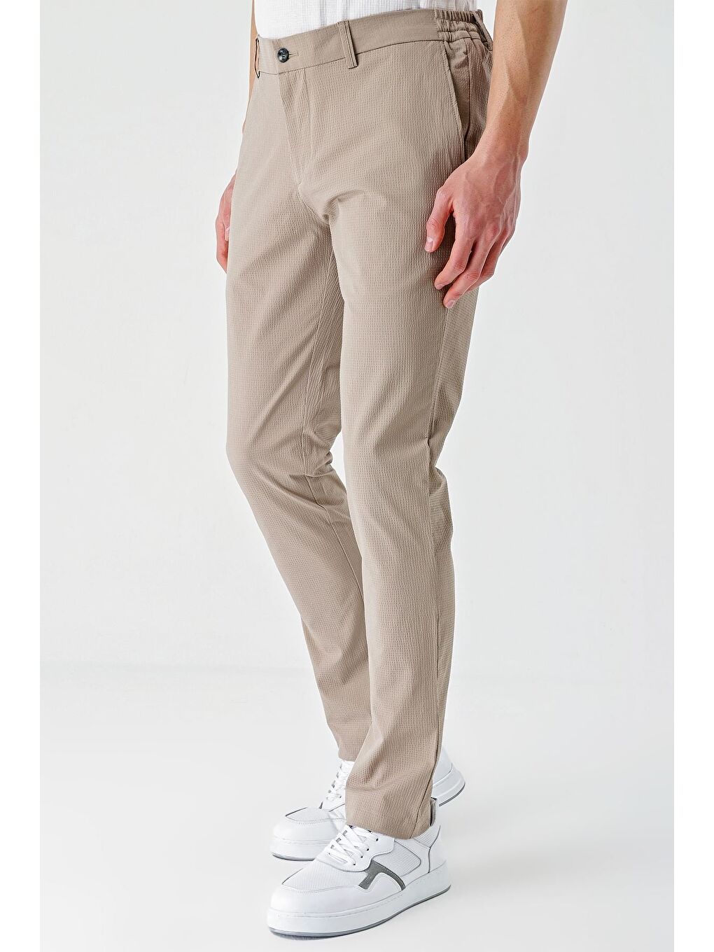 شلوار بژ کژوال باریک با جیب های کناری 1003240206