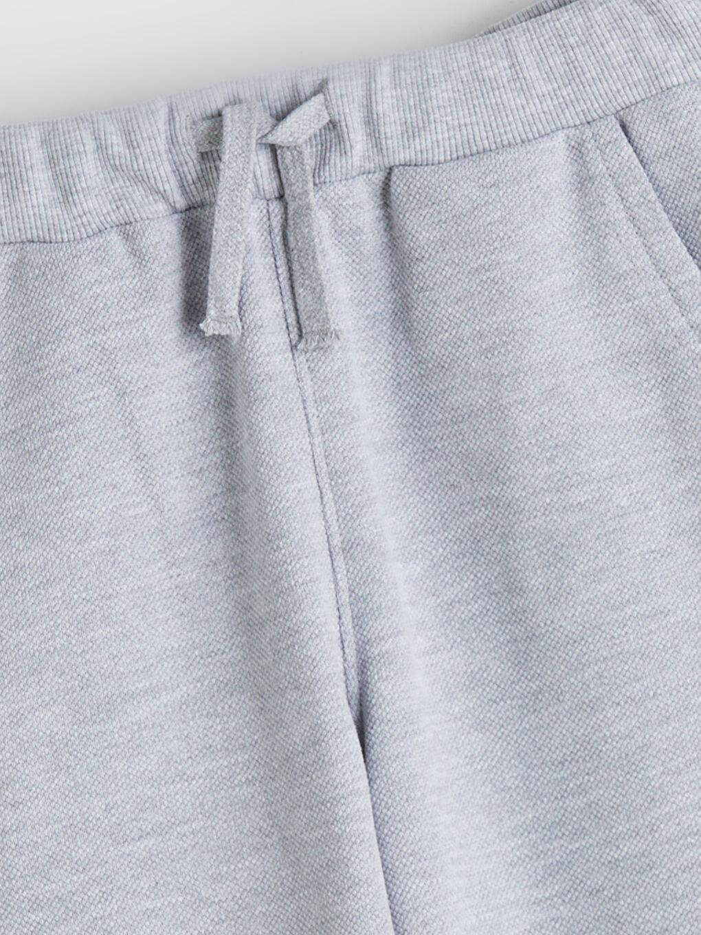 کت های ورزشی پسرانه با کمر الاستیک و بند کشی قابل تنظیم، جیب های کناری و پاهای آجدار از پارچه پیکه با ضخامت متوسط ساخته شده است.