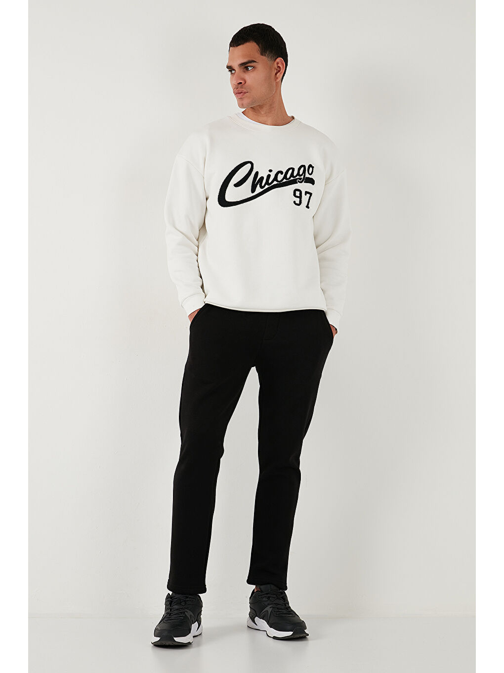 مدل: شلوار راحتی سبک لباس: روزمره/ورزشی فصل: پاییز/زمستان جنس: ۶۶٪ پنبه ۳۴٪ پلیاستر نوع بسته شدن: بندی کمر جیب: با جیب کمر: کمر معمولی نوع پا: ساق صاف اطلاعات الگو: سایز معمولی اندام مدل: قد: ۱۸۵ سانتیمتر / سینه: ۱۰۴ سانتیمتر / دور کمر: ۸۴ سانتیمتر / دور باسن: ۱۰۴ سانتیمتر / سایز: L گروه سنی: بزرگسال خاستگاه: ترکیه