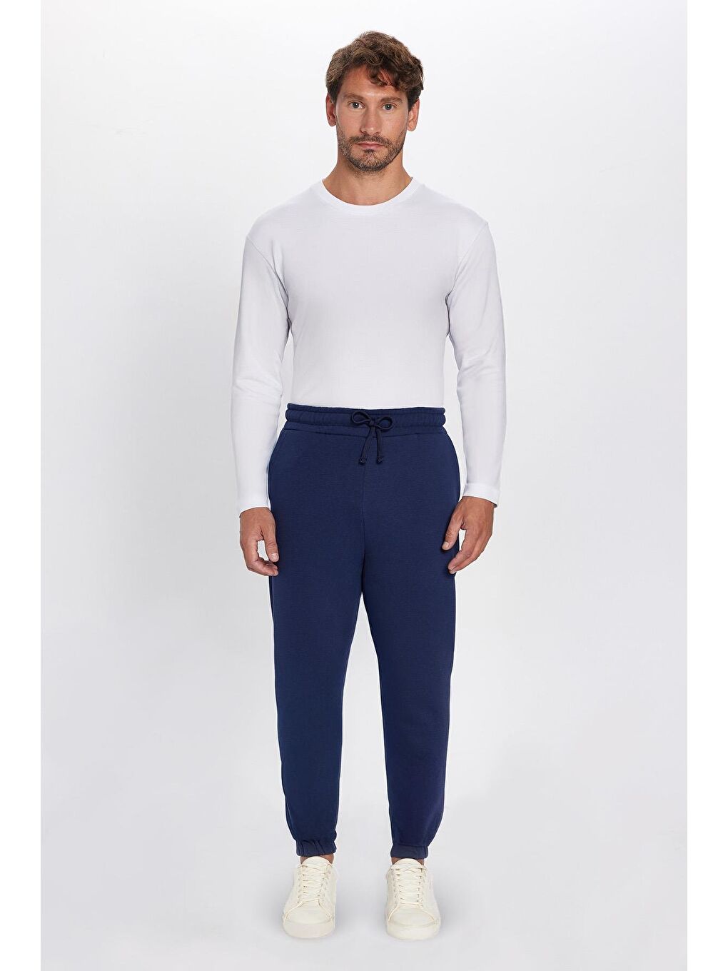 شلوار گرمکن یونیسکس ریلکس فیت راحت برش 3 جیبی الاستیک دمپایی آبی سرمه ای