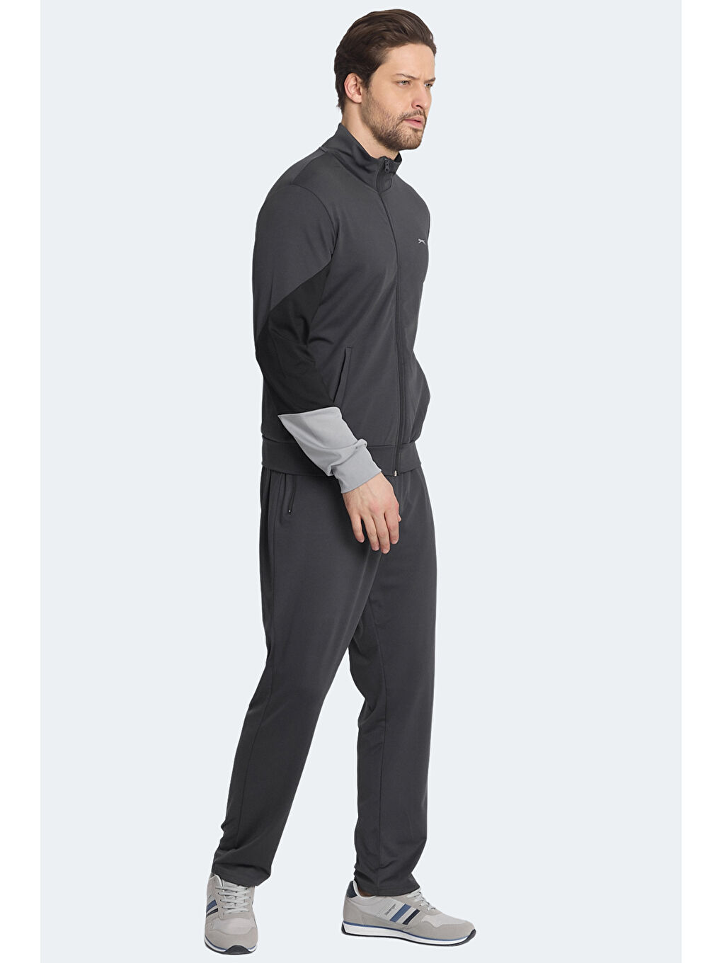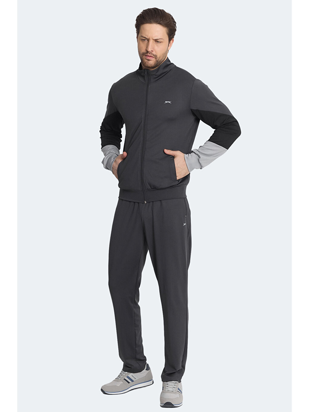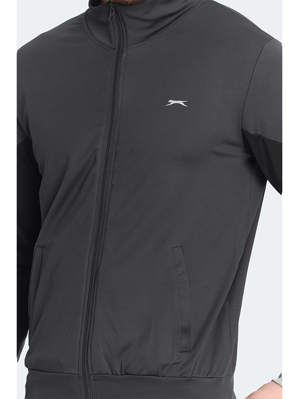 لباس ورزشی مردانه زیپدار یقه ایستاده، جیبدار، خاکستری تیره، مدل RAPID